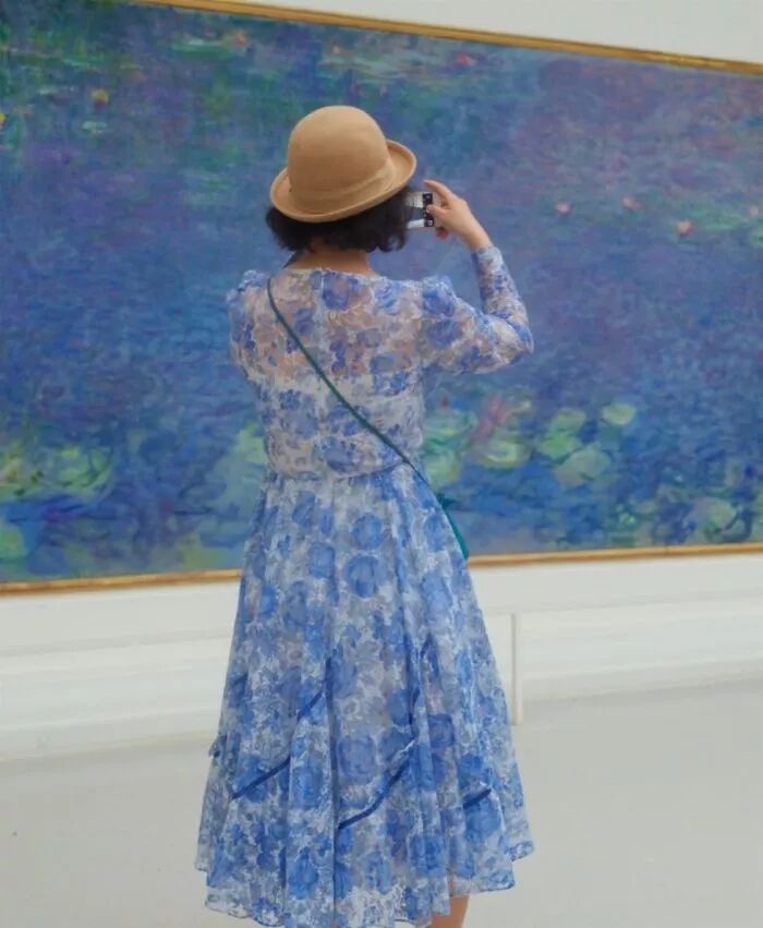 他等待游客以一种有趣的穿搭方式,站在一件与之匹配的艺术品面前。一整天的时间,他的眼睛紧紧注视着摄像机的镜头,眼睛都不敢眨一下,生怕错过。有时候,他甚至顾不得吃饭。