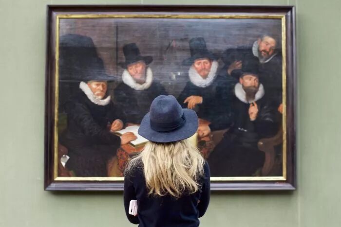 最终,他的这组作品得以呈现,每一张照片中,人物与面对的艺术品之间产生意想不到的和谐,除了服装之外,也有人因为他们的发型、发色、甚至胡须而与绘画作品达到高度的匹配。