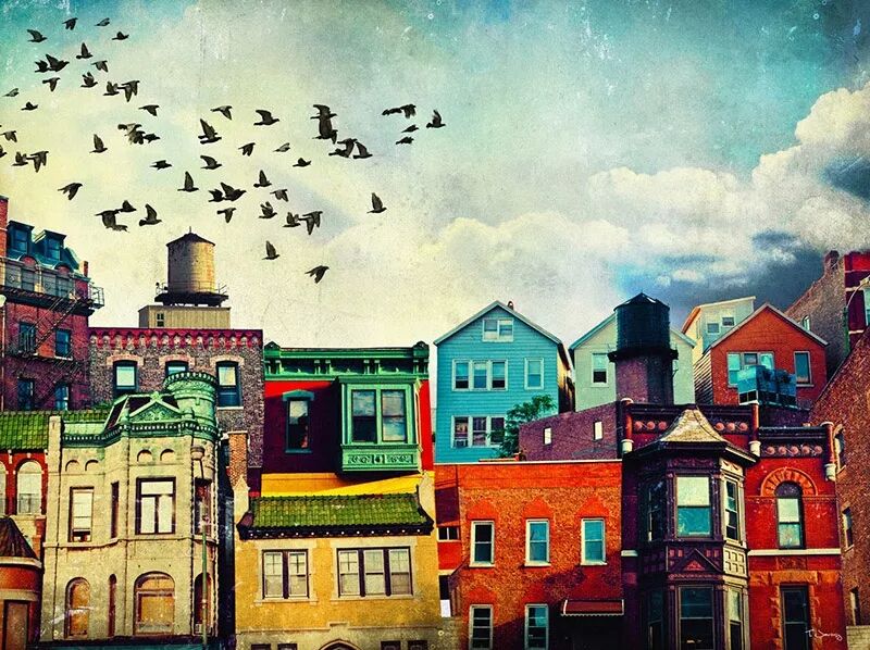今天要跟大家分享的就是蒂姆·贾罗斯拍摄的一组芝加哥街头作品,他一改传统的摄影模式,尝试将拍下来的照片进行染色和拼贴,经过一系列的后期处理之后,芝加哥的城市色彩被放大溢出,呈现出一种水彩画的质感,没有一丝一毫的不协调感。