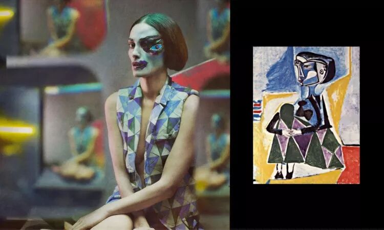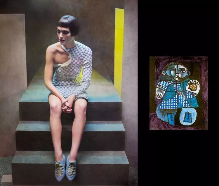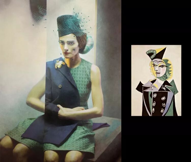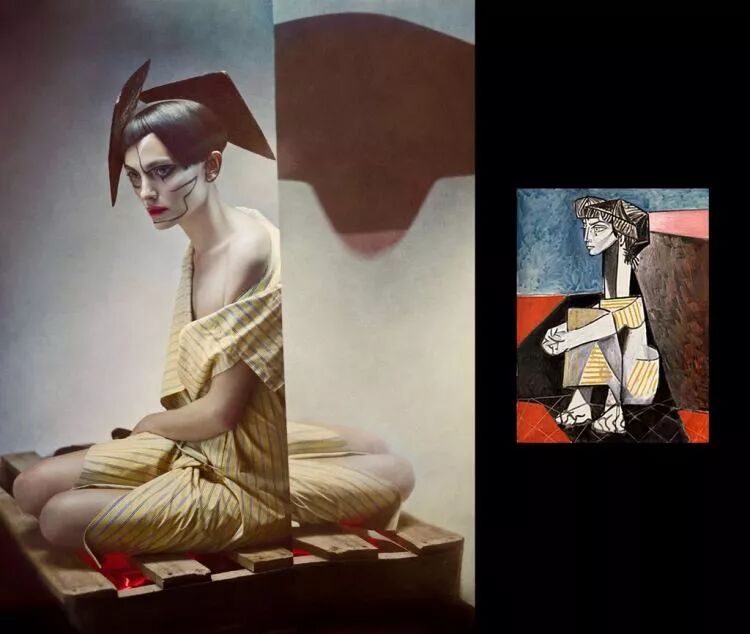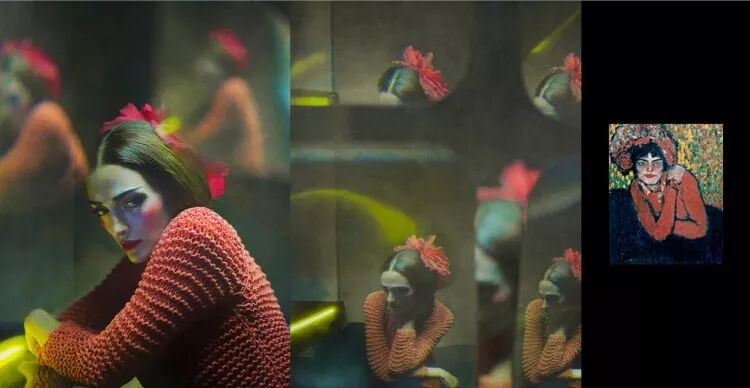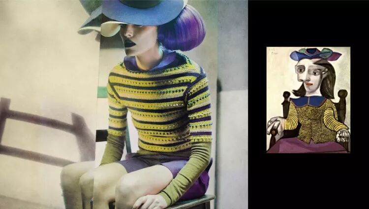 他先将毕加索的每一幅抽象画进行错位、解构、重组等抽象思维,然后根据画中人,对模特儿进行造型的仿造,打造出空间氛围,加上摄影技巧的重新演绎,于是,清晰可辨的五官与强烈的色彩对比,一下子还原出了画中人物的状态。