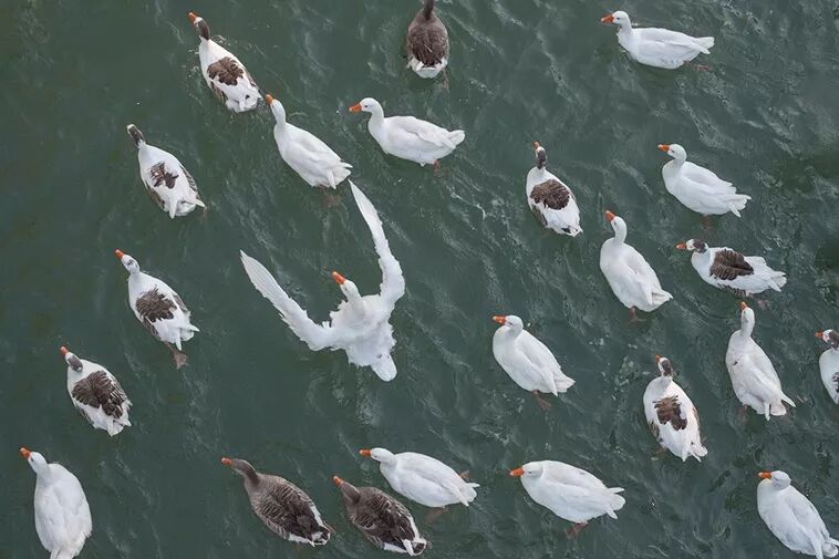 功夫不负有心人,在几年的时间里,他拍摄下了众多的巧合街头风景照片,比如在水中闪闪发光的鸭子,树影与墙面形成的大树等等。