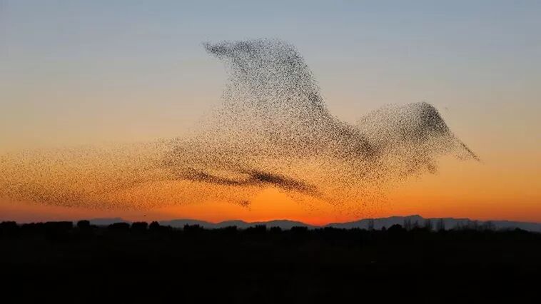 毫无疑问,这是大自然赋予了这位摄影师神奇的礼物,作为丹尼尔付出的时间和耐心所得的回报,不得不说这些照片真是太震撼了,油画酱看完都感到非常不可思议,椋鸟群恰好呈一只飞鸟的形状,令人惊叹叫绝。
