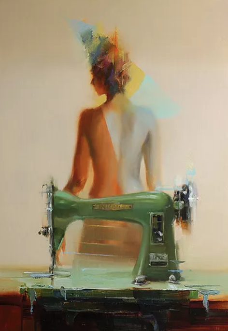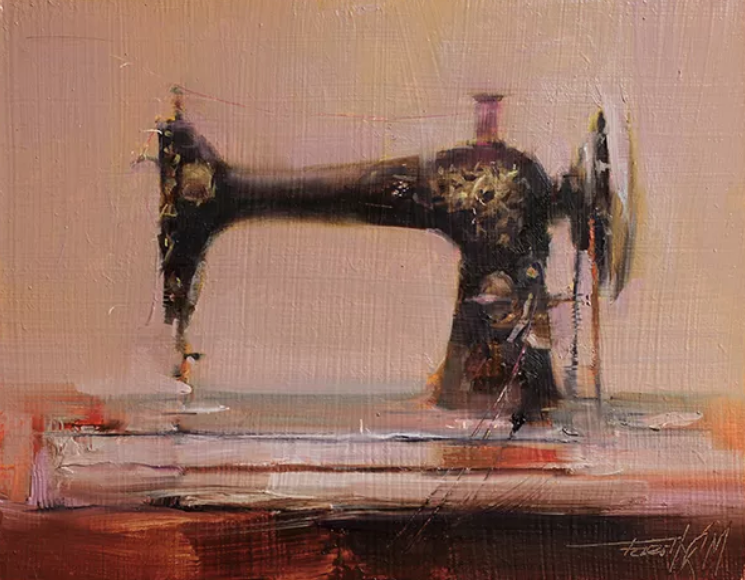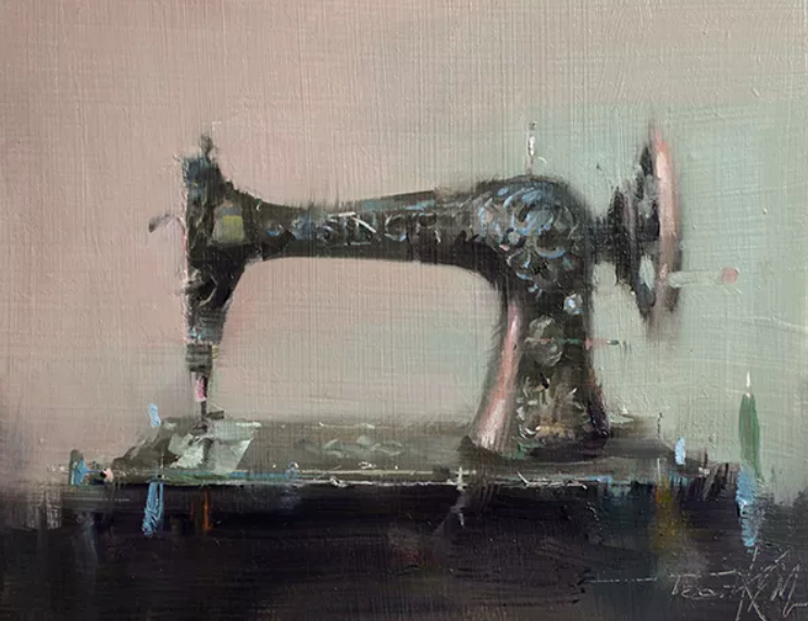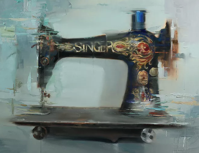 接下来,就让我们一起来欣赏一下泰伊·金的缝纫机油画吧。