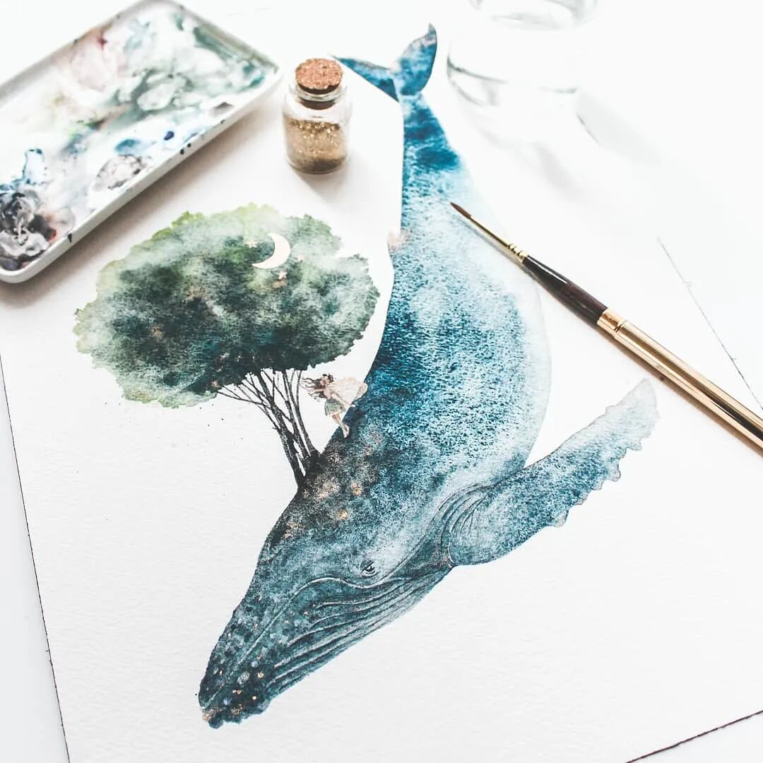 让卡南·埃森萌生出描绘鲸鱼的想法是来自一位名叫洛伦·艾斯利的哲学家,他说过这样一句话:“如果这个世界上拥有魔法,那么它就藏在水中。”正是这句话引起卡南·埃森对海洋的兴趣,从而让她喜欢上鲸鱼这种动物。