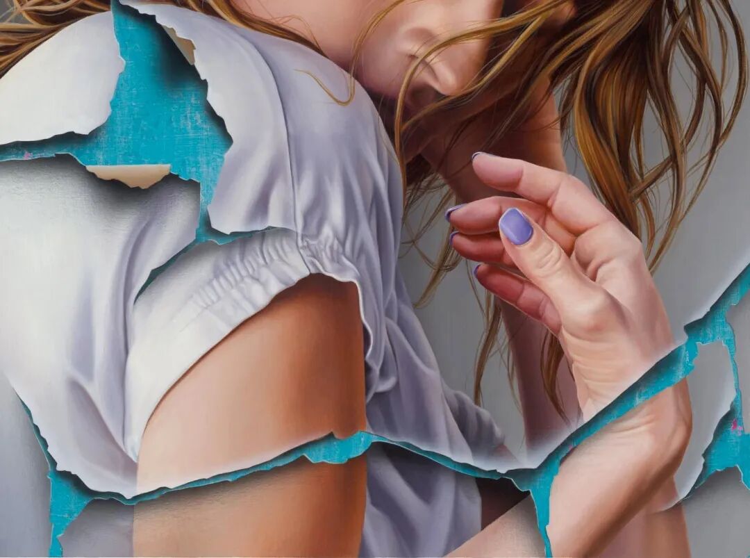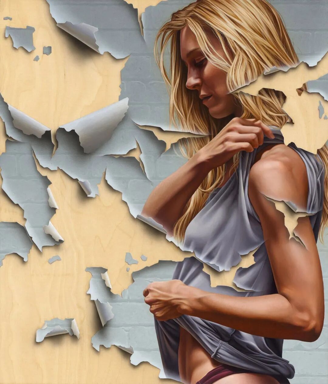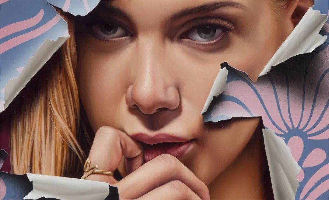 詹姆斯·布洛的超写实绘画,模仿画作干裂和设计拼接的感觉,给人一种耳目一新的感觉,虽然,他的画作是一幅超写实绘画作品,但是,让人看不到任何的照片痕迹。