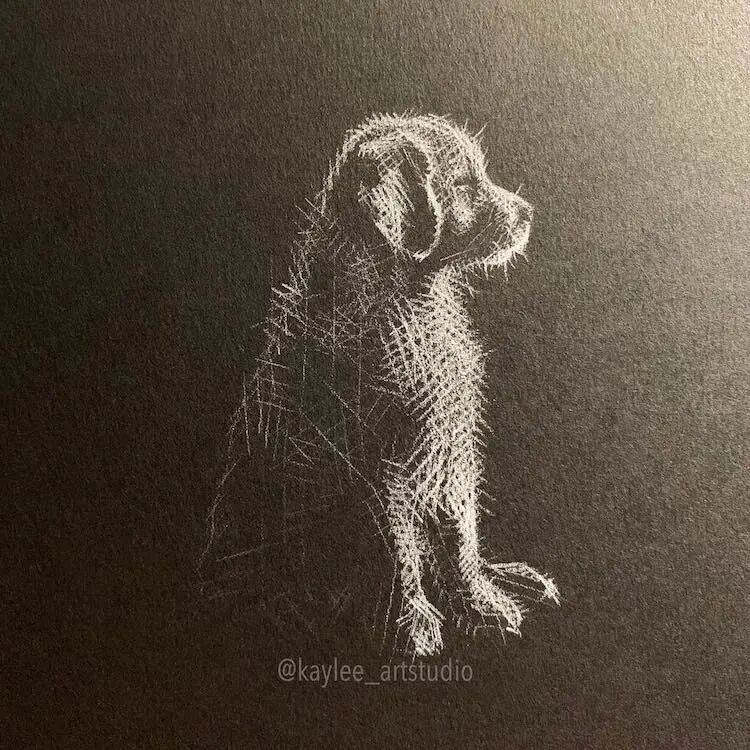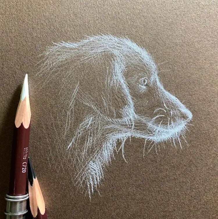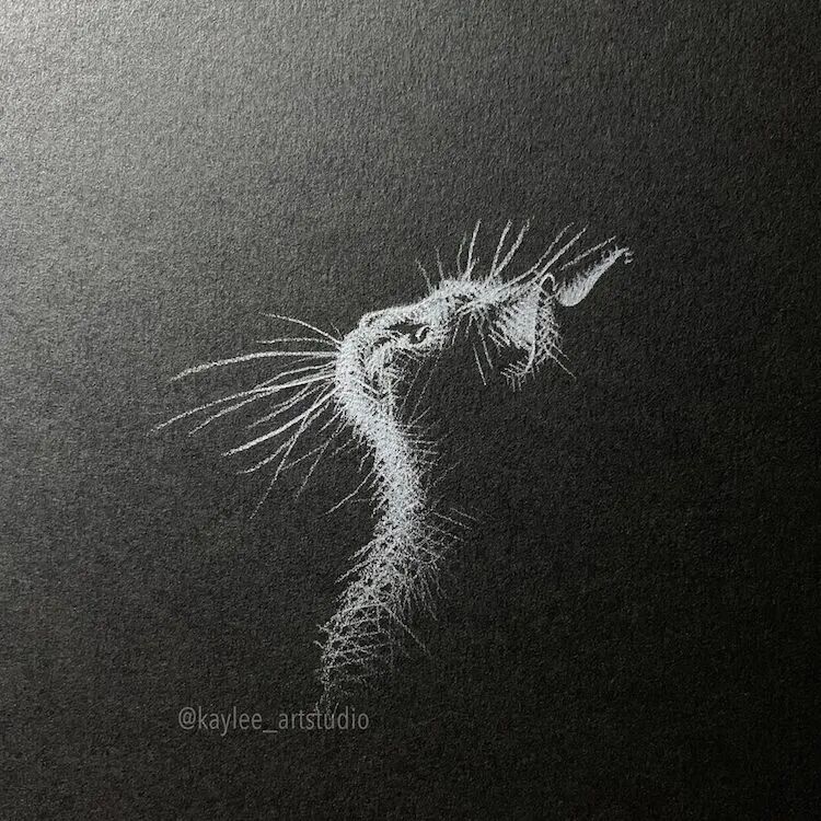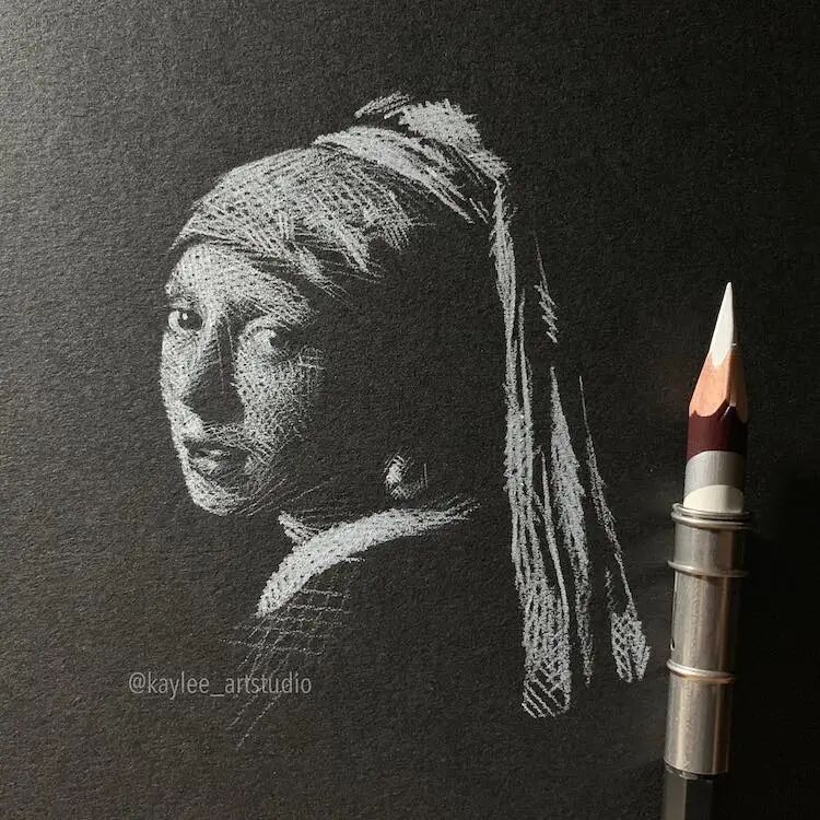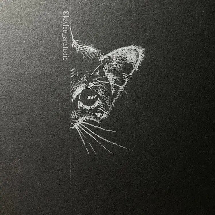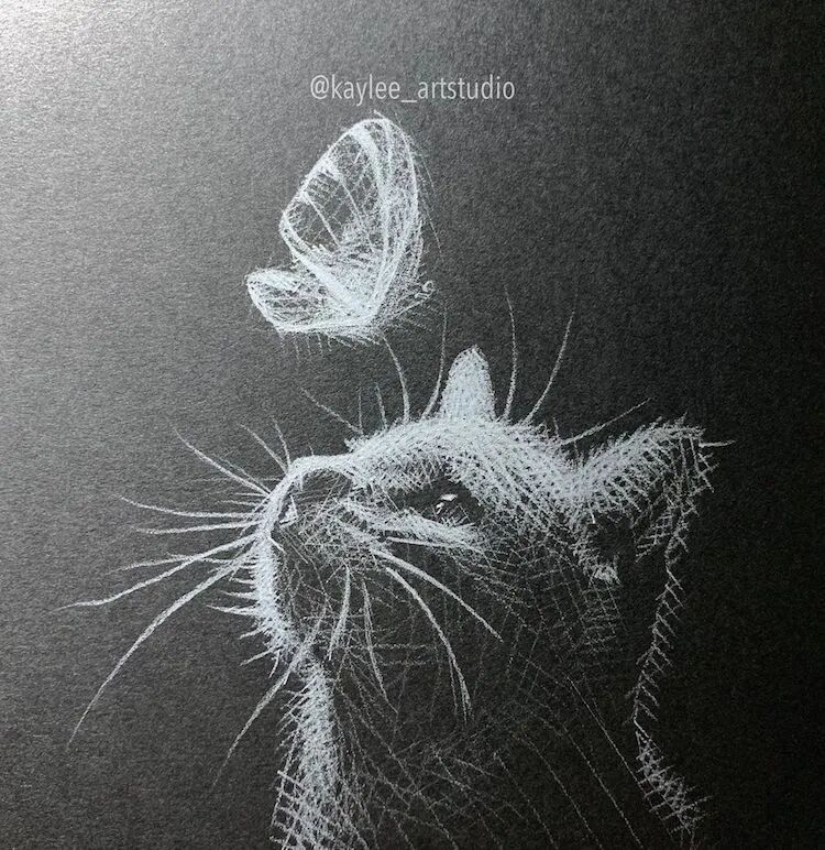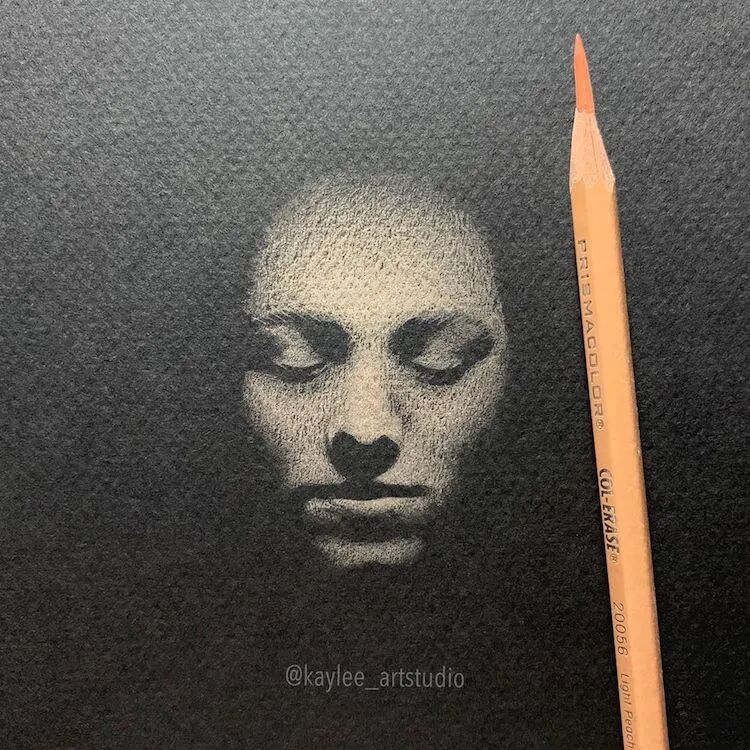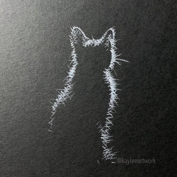 这种负像画作绘制并不算复杂,只需要确定好一个较强的光源,然后想想强光照射到物体上,然后,在黑色的卡纸上,用白色的铅笔画出光线最为明亮的地方,一幅负像画作就完成了。李凯作品之所以引人注目的另外一个原因就是他采用看似简单的交叉线条去进行绘制,这些让人一眼就可以看出来的交叉线条,非但没有影响画作的完整性,反而让他李凯的作品更具有神秘感和空间感。