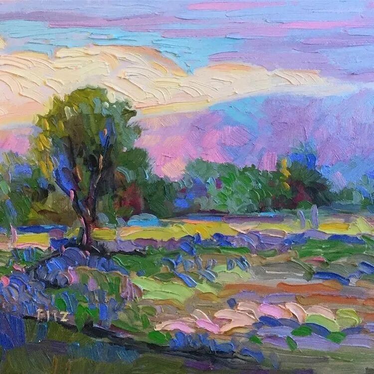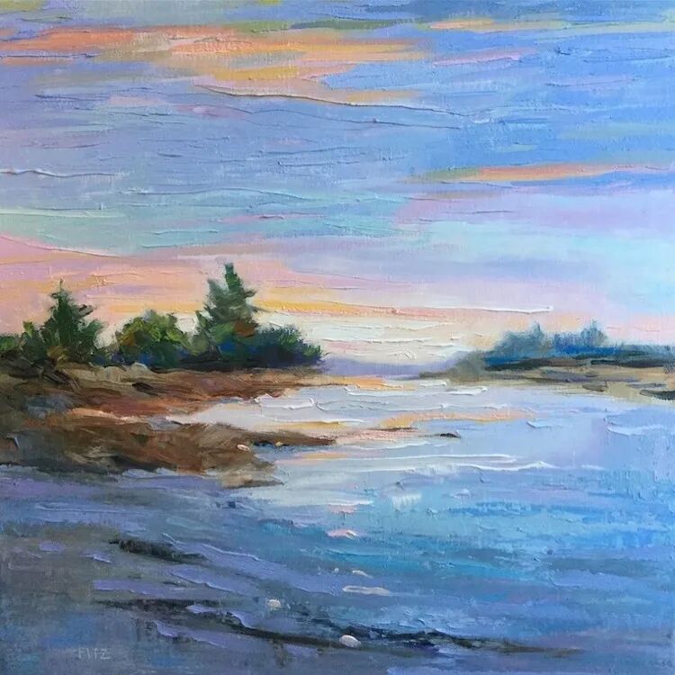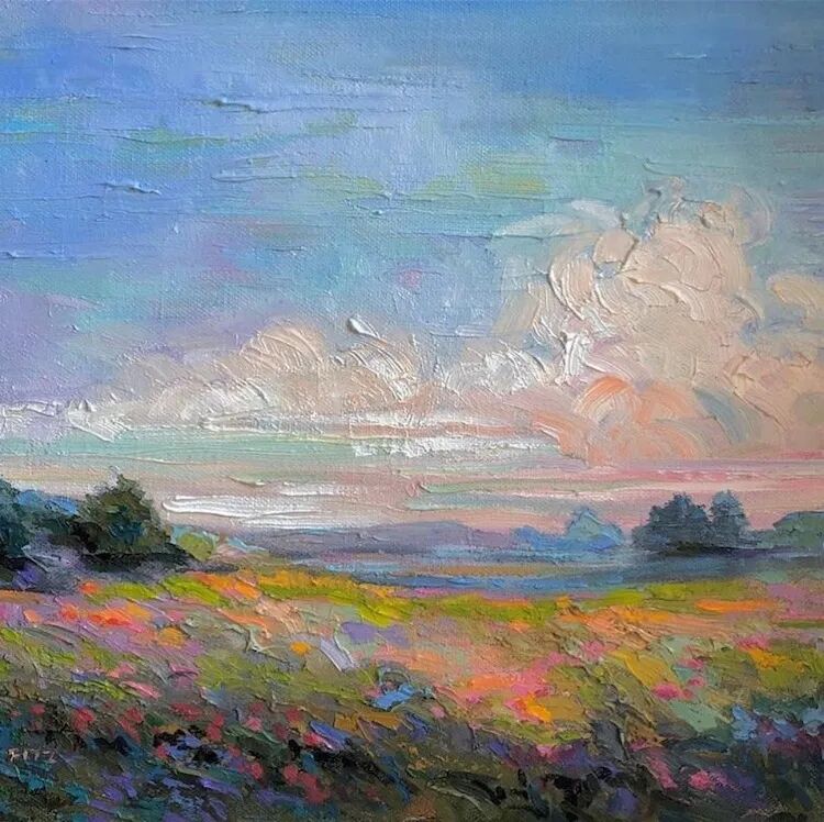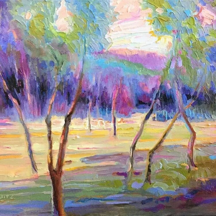 风景画家夏洛特·菲茨杰拉德在自己网站的首页,回答了人们对于她作品的一些疑问,夏洛特·菲茨杰拉德的画作结合了表现主义和印象派的一些特征,并用刮刀和刷子将风景描绘出来,这对于她来说是不仅仅是一种尝试,还是一种关于绘画的思考。