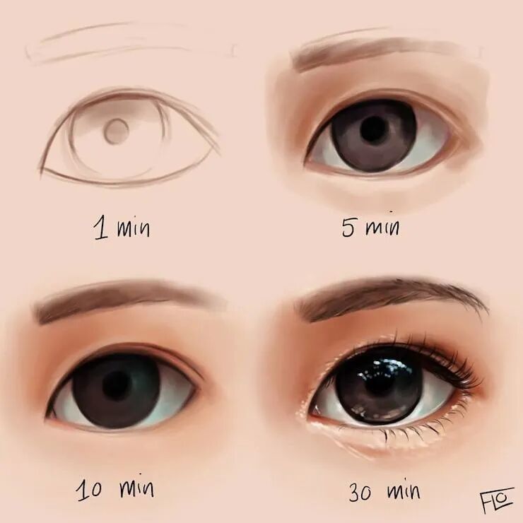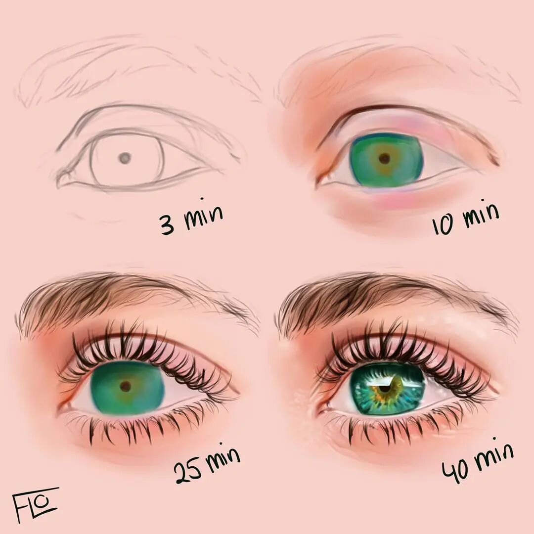 3分钟,10分钟,25分钟与40分钟画成的眼睛。