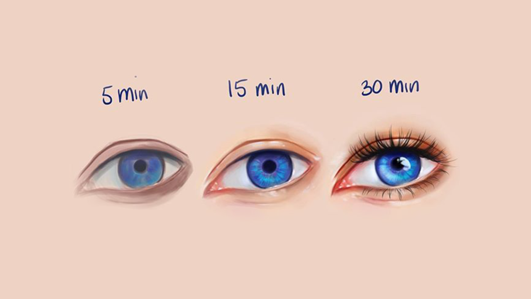 1分钟、5分钟、10分钟和半小时完成的眼睛。