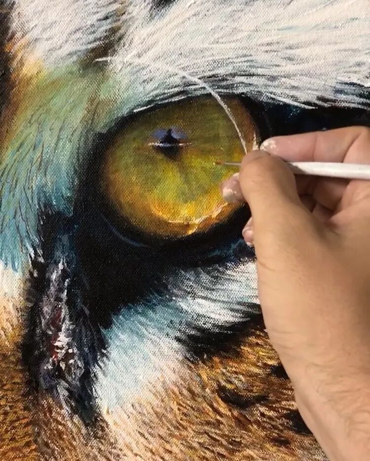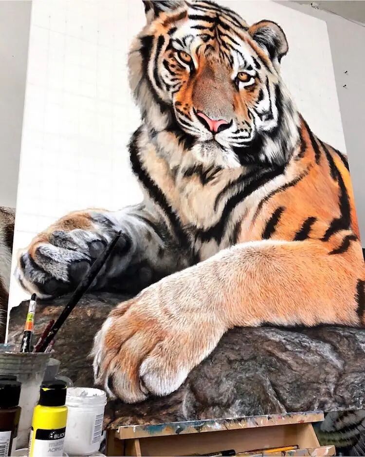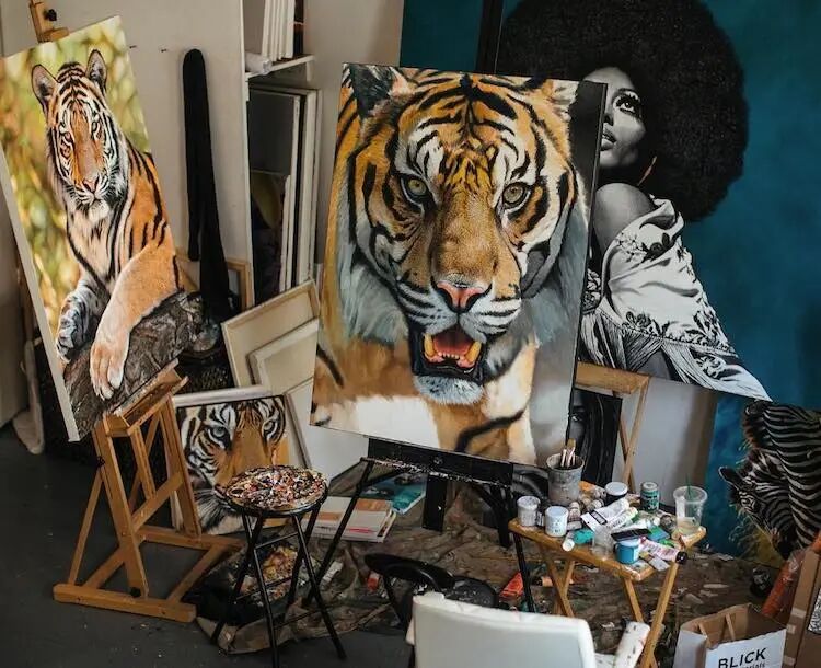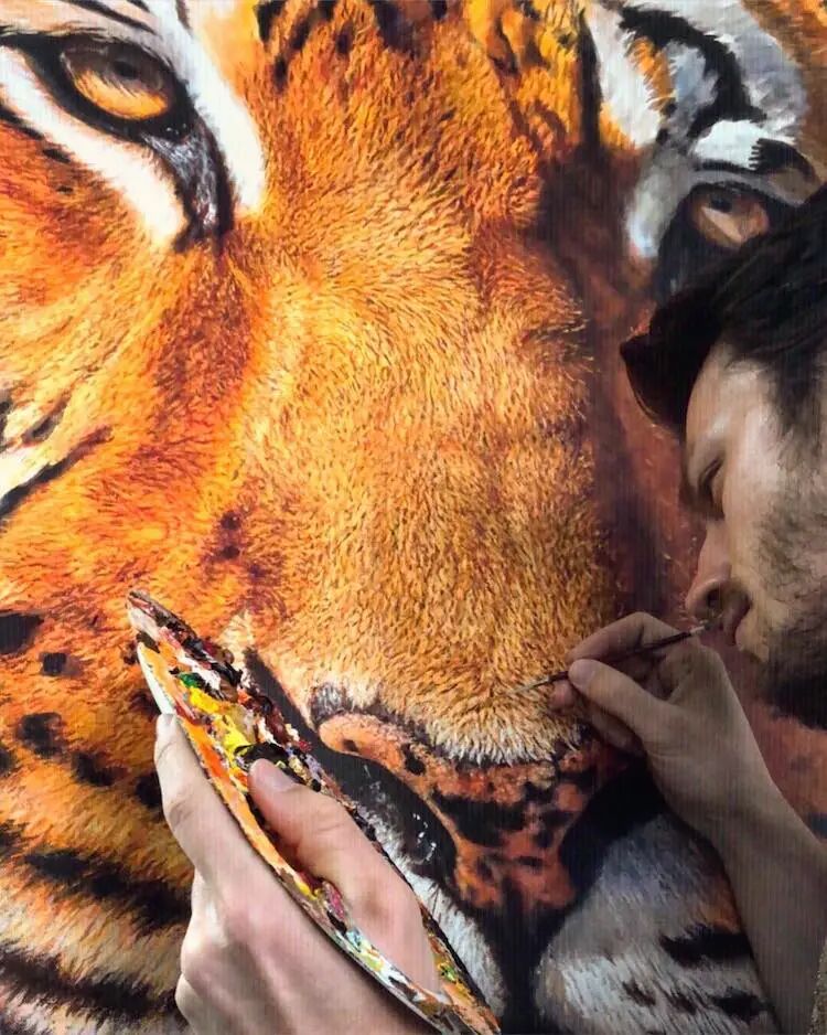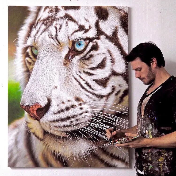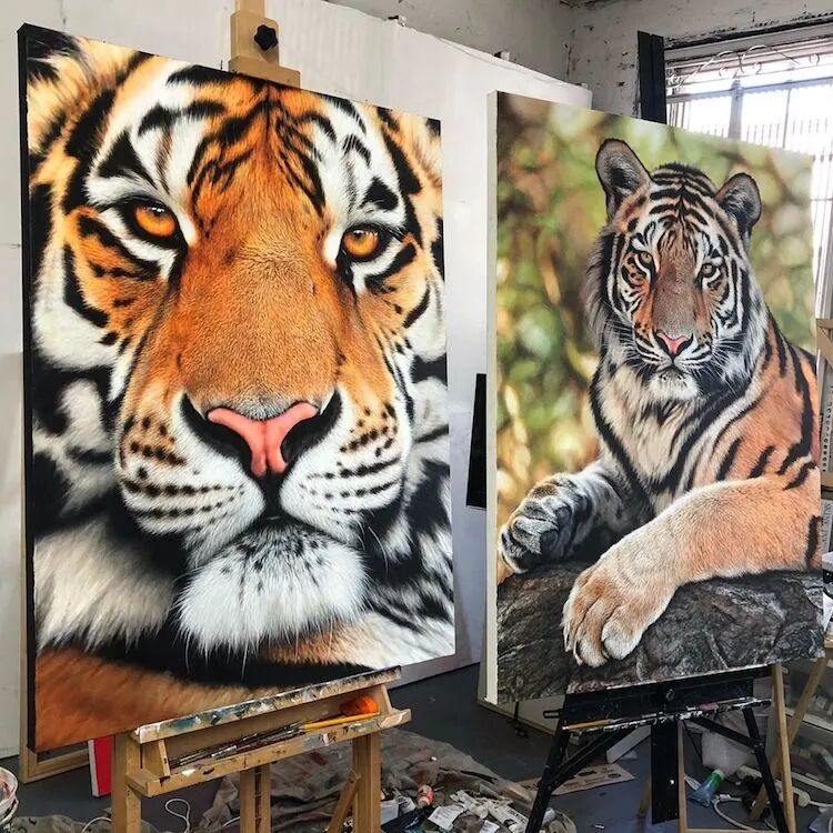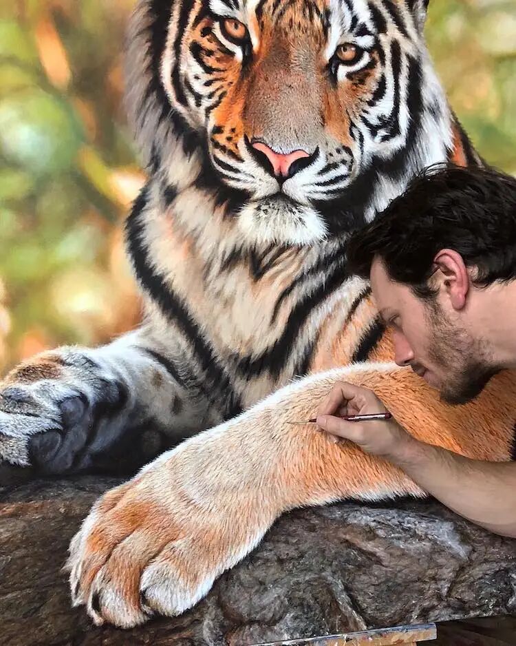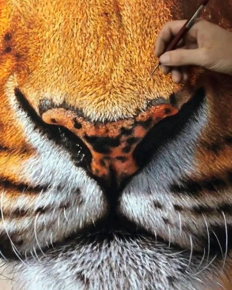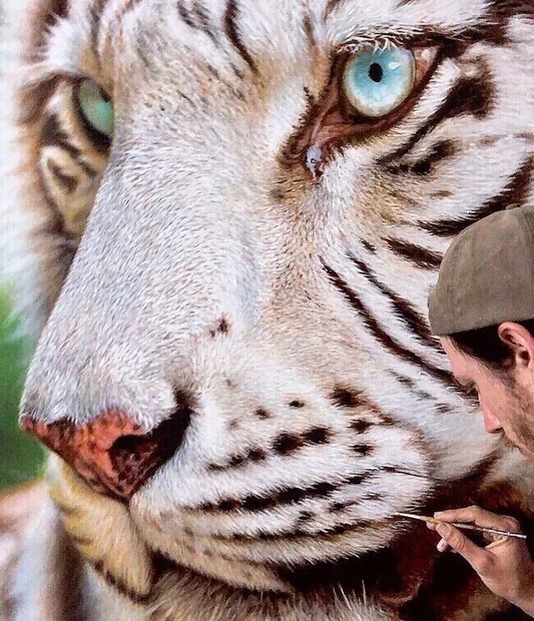 不过,来自加拿大的超写实画家尼克·西德,就非常喜欢画超写实动物,在尼克·西德很小的时候就非常喜欢老虎,为了像这些大猫致敬,他用超写实的方式,将这些漂亮的动物画的栩栩如生,仿佛下一秒就要跳出画布。