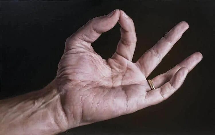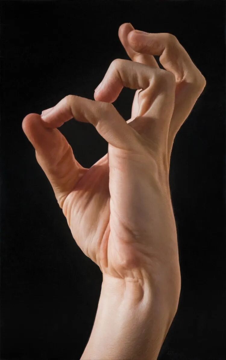 接下来,就让我们一起来看看这位对于手部情有独钟的超写实画家,究竟把手画得多么逼真吧。