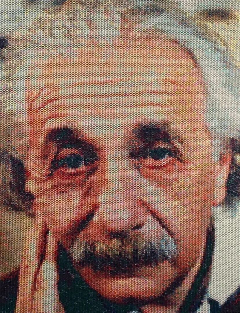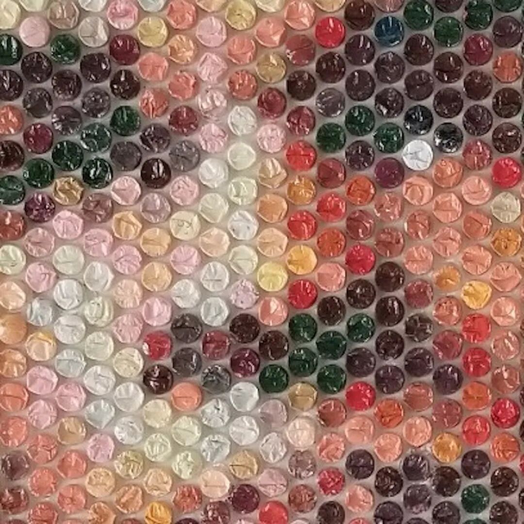 让我们再接着放大一点,就可以清晰的看到每一个气泡包含的色彩,正是这一点接一点的小色块组成了这个肖像作品。