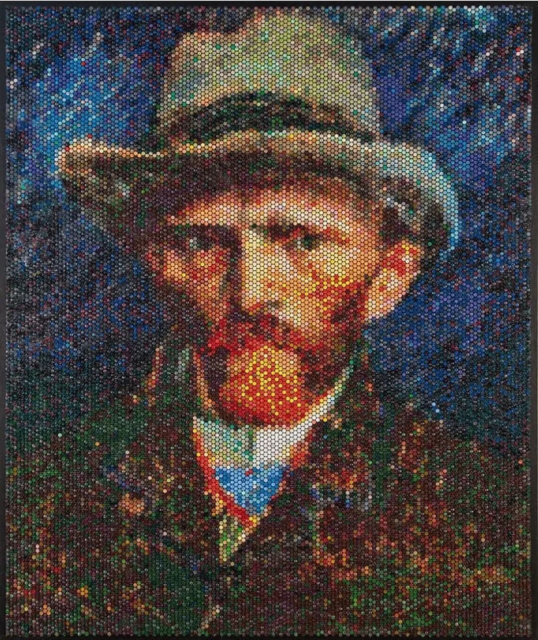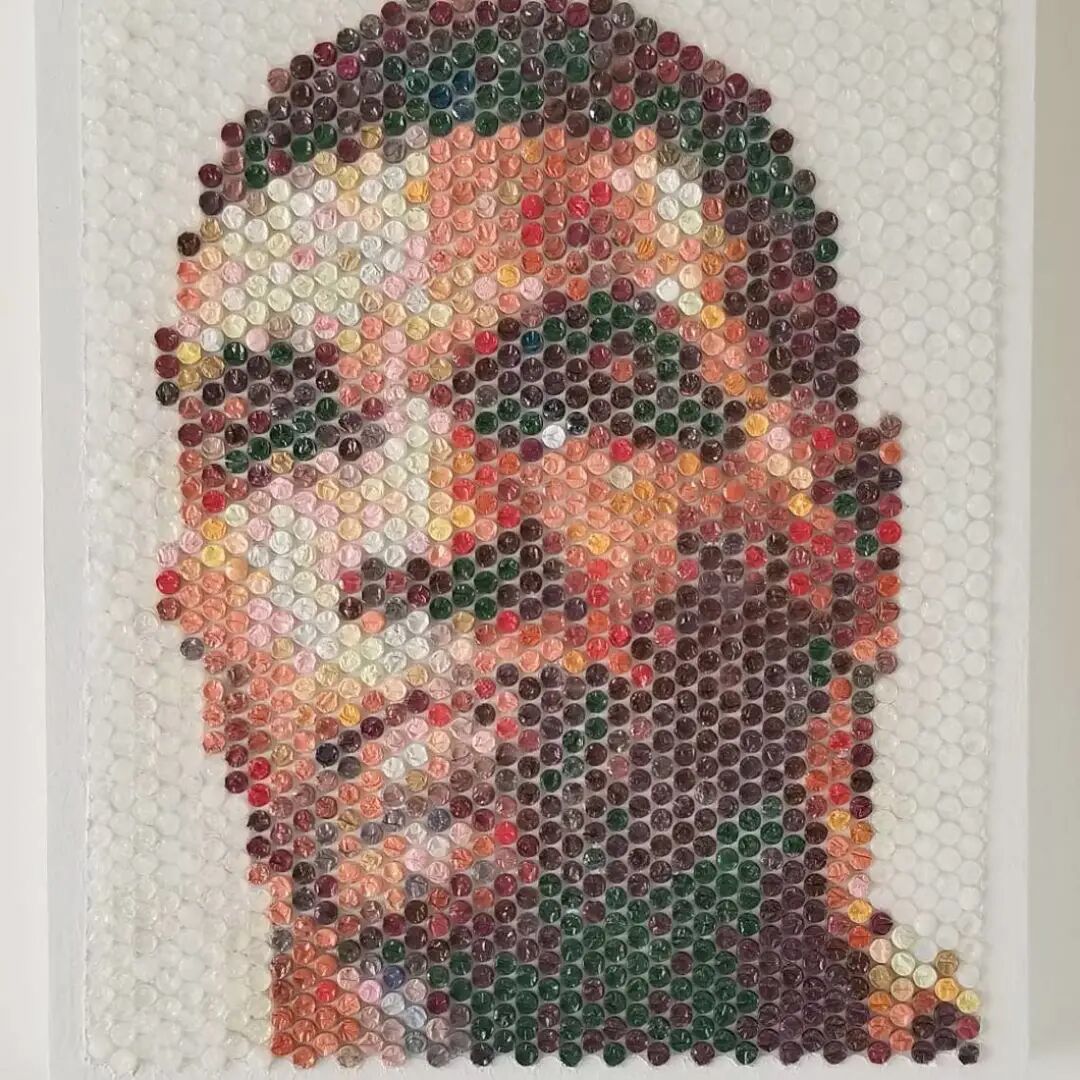 而这位叫做布拉德利·哈特的画家,就使用这种材料来绘制画作,离远了欣赏他的作品,就像是一块拼图,这幅画仿佛由无数个色块组合而成。事实上,布拉德利·哈特的创造方式就类似于拼贴拼图,在创作作品时,布拉德利·哈特会实现调和好颜料,然后用一根注射器吸取这些颜料,紧接着将这些颜料注射到气泡膜的气泡中。