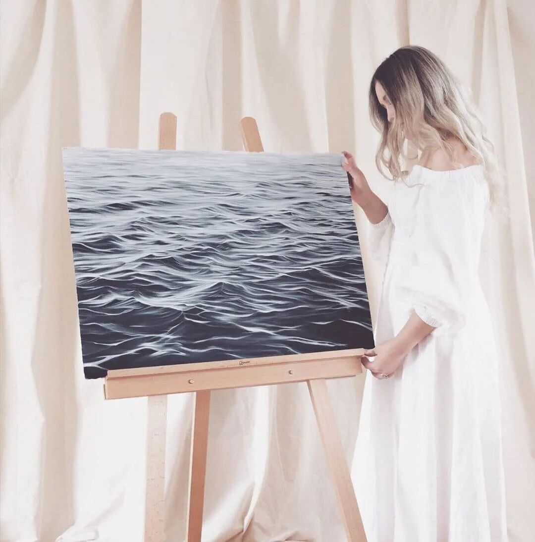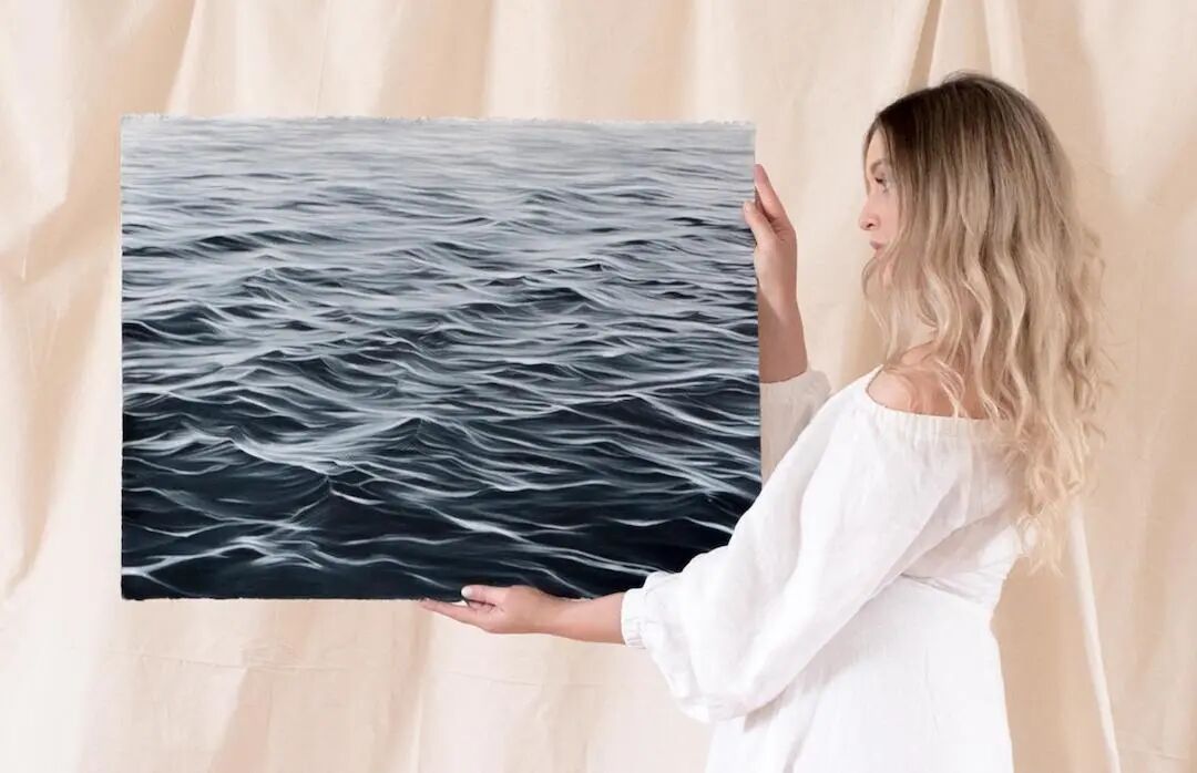 为了描绘大海的模样,贝萨尼·莫法特在2019年中旬辞去了原本稳定的工作,专注于绘画的创作,从那一刻起,她的双手就没用停下。在她的作品中,我们可以看到柔和的波浪,也可以看到泛起的白色浪花,也有非常迷人的深蓝色海水。