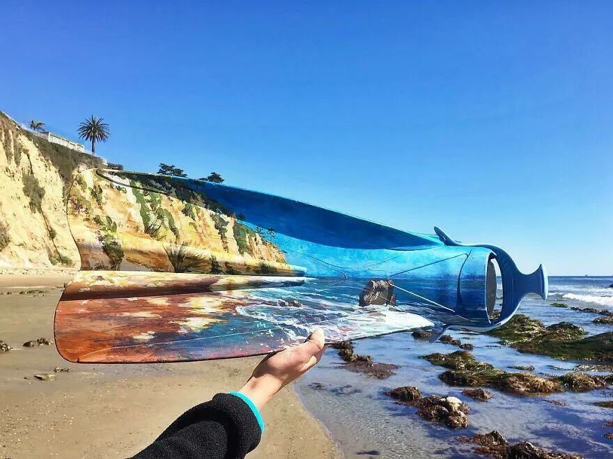 来自美国的玛丽亚·雷丁同样也是一位十分重视生态环境的艺术家,她经常在景区中,看到很多游客遗留下各种垃圾,美丽的环境瞬间被破坏,这种情况令她忧心不已,于是,她开始拿起画笔,创作一系列特别的艺术作品。