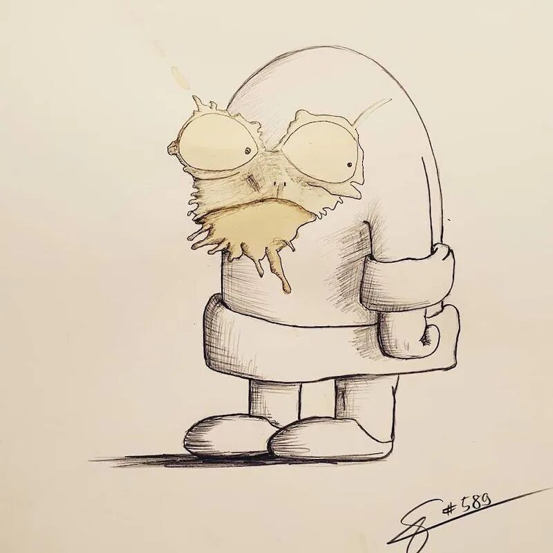 不论是什么不规则的咖啡渍,斯蒂芬·库尼格都能把它变成一幅有意思的插画,趣味十足,让人看了印象深刻,接下来们就一起欣赏一下,这些咖啡渍在变成插画之前与之后的对比吧,相信你看完一定会十分佩服。