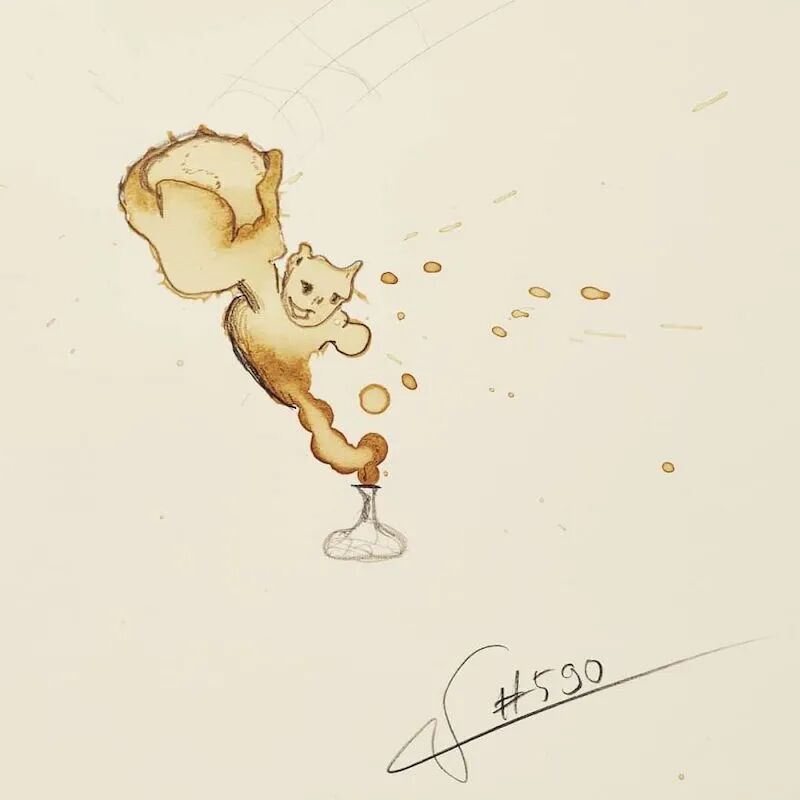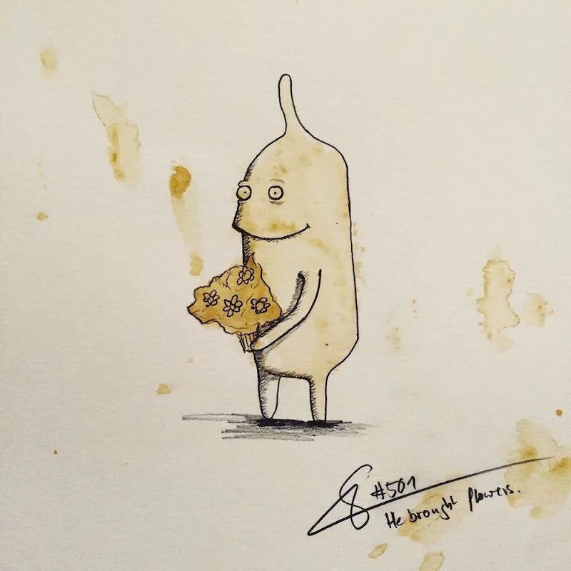 考验你的创意的时候到了,对于大多数人来说,咖啡渍都是一种困扰,不论是洒在桌子上,还是洒在衣服或者本子上,清理起来很麻烦,但是对于来自德国的艺术家斯蒂芬·库尼格来说,咖啡渍简直是老天爷赐给他的一种艺术创作上的礼物,因为他想到了咖啡渍的一个好的用处,那就是用它来画插画。
