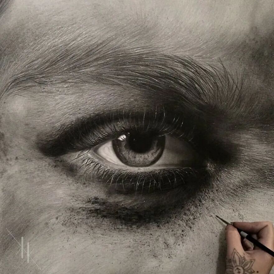 看过基特·金的超写实画作的人,无一例外都被他的作品所震撼,因为他笔下的人物,哪怕只是一只眼睛,都太过逼真了。与他的画作相比,高清照片都变得暗淡下去。不过,基特·金的作品由于太过真实,还是收到了很多质疑的声音,很多人看到后想当然地以为是相机拍下的高清照片,得知是画出来的之后,依然不会相信。