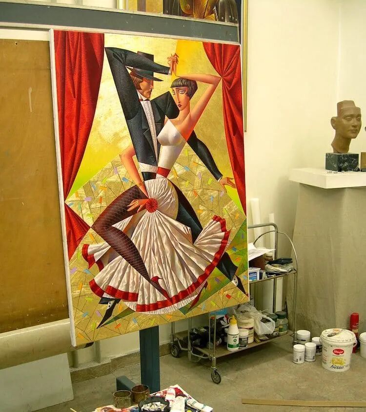 来自俄罗斯的艺术家乔治·库拉索夫的绘画风格,便像极了我们从万花筒中看到的不断变幻的图案,他创作的女性绘画,是一个个几何碎片所构成的,十分抽象,并且充满超现实感,调色大胆充满活力,画中的女性或妩媚或优雅,让人看了十分着迷。