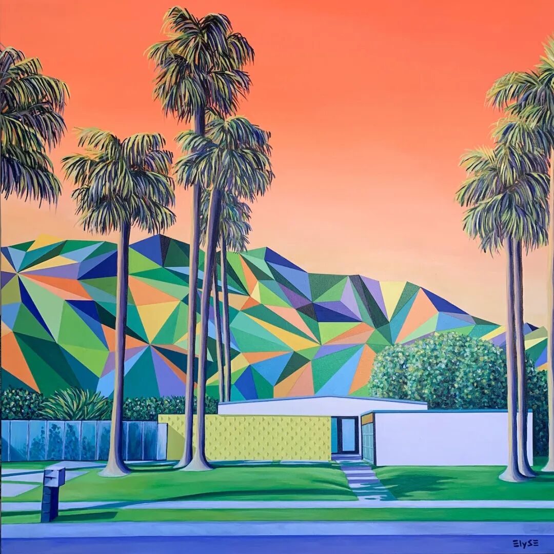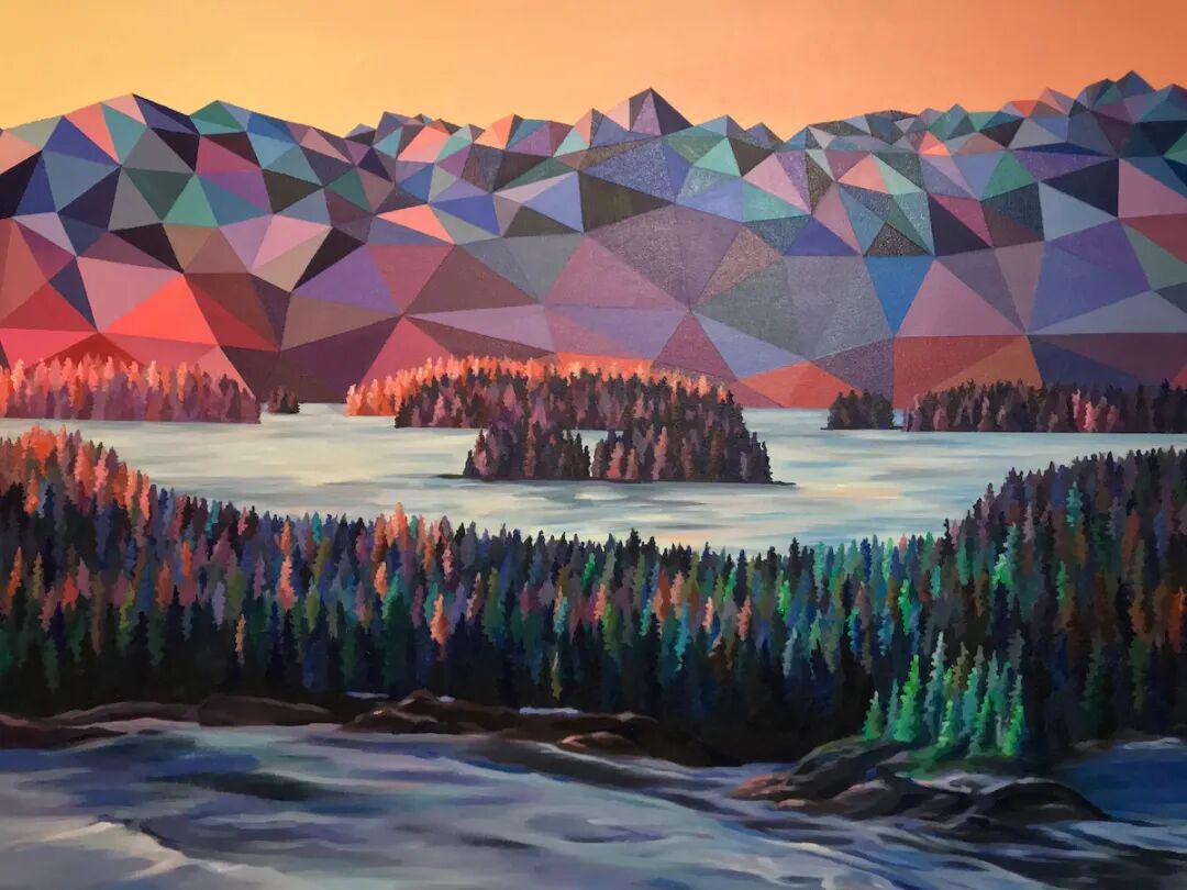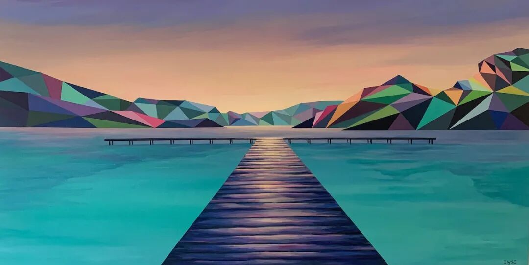 风景绘画大都十分写实,不论是山、水、树木,都很难以另一种形式存在。但是,就是有特立独行的艺术家,用独特的方式来创作风景画,比如来自美国洛杉矶的爱丽舍·道奇,她就将看到的自然美景,转化成了独特美感的几何形式。