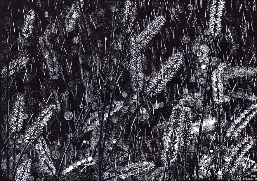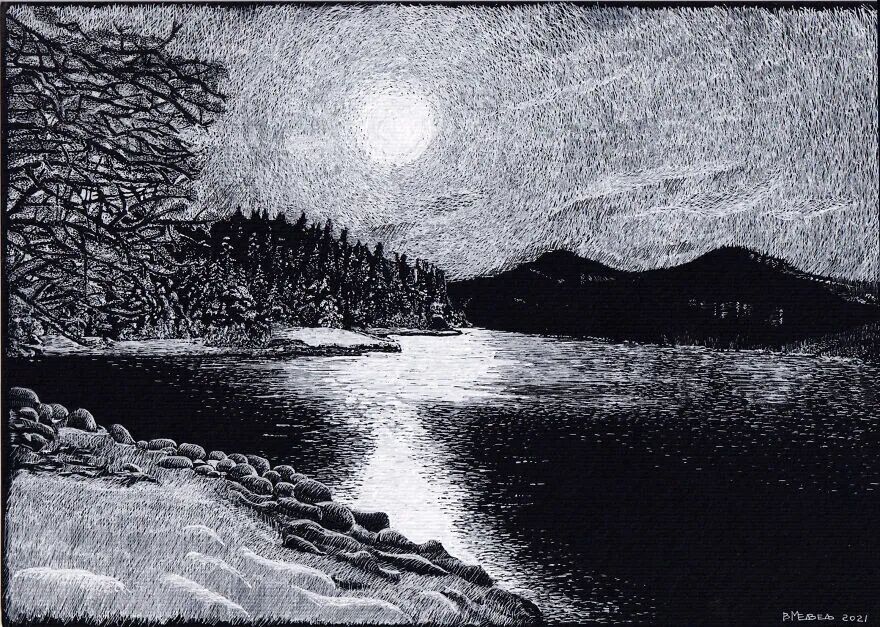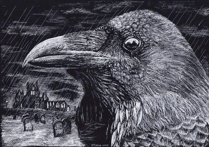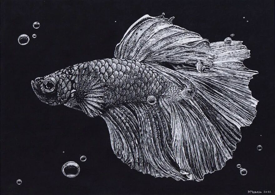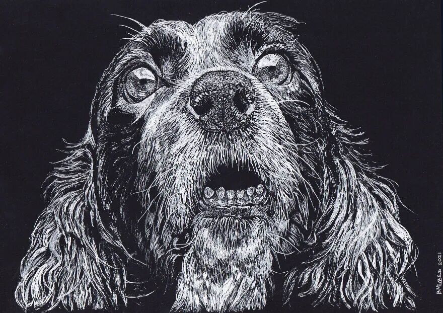 这位艺术家就是来自俄罗斯的维塔利,他不仅绘画方式不走寻常路,他的绘画风格也令人赞叹,维塔利画得最多的就是超写实,不论是风景、还是动物肖像,他都画得十分逼真,精致又复杂的线条,勾勒出一幅幅精彩的作品,带给人很强烈的真实感,看他的画作,就好像在欣赏一张高清黑白照片一样。