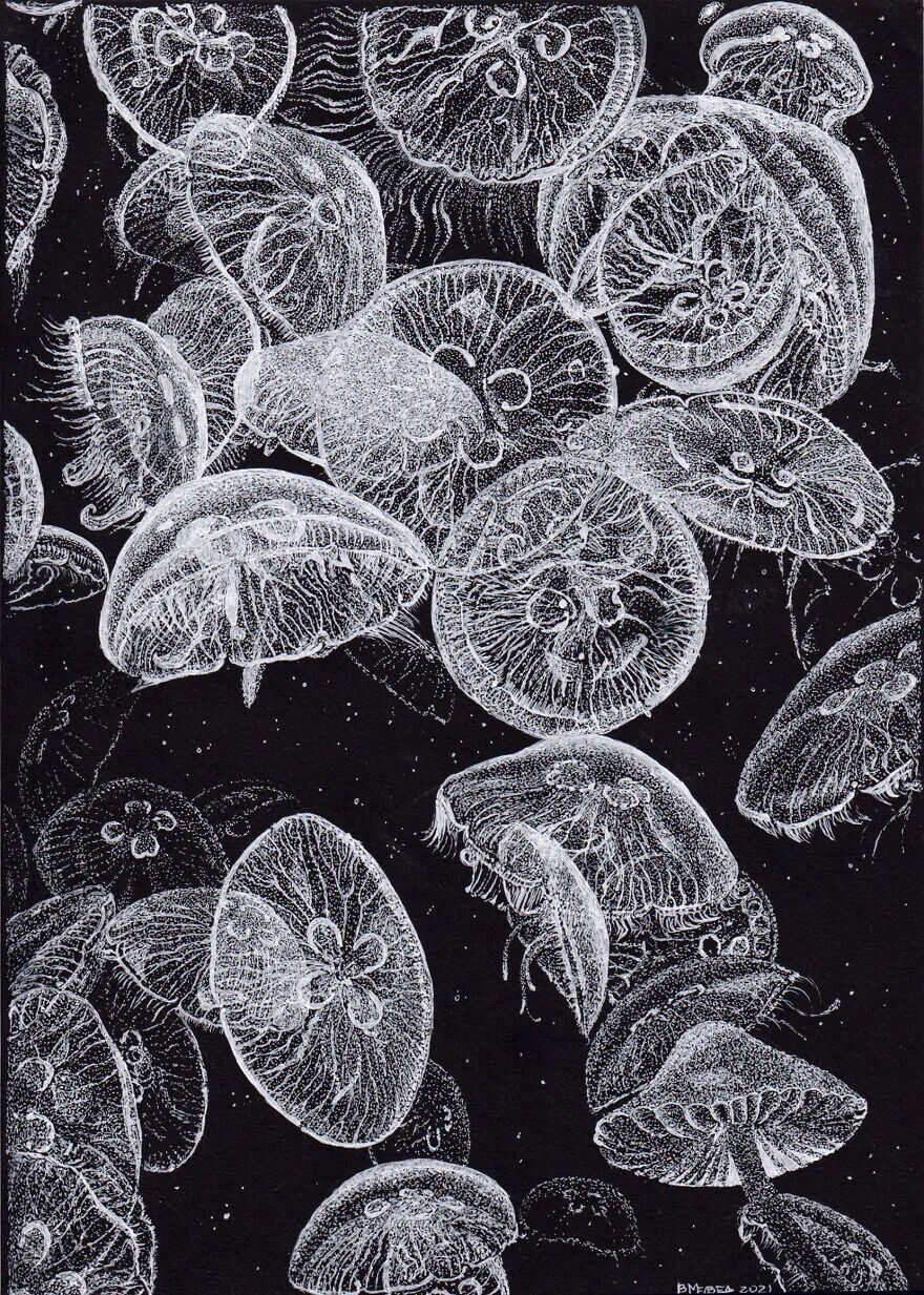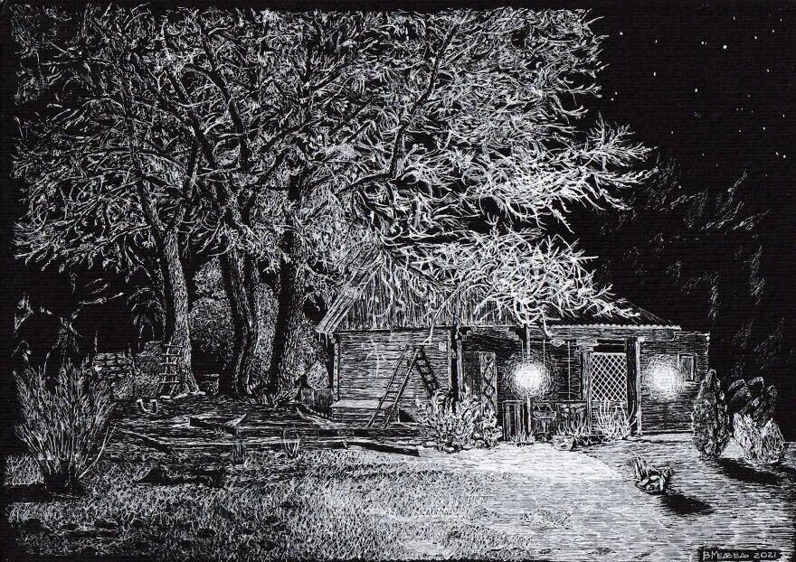 在绘画领域,更是鲜少有反其道而行之的,但是在近现代,艺术家形式不受拘束,创意井喷的时代,也出现了一些敢于打破常规、尝试更多可能的艺术家,比如接下来小绛要跟大家介绍的这一位,他就用白色的中性笔,在黑色的纸上画画,黑与白的强烈对比,带给人极致的视觉冲击。