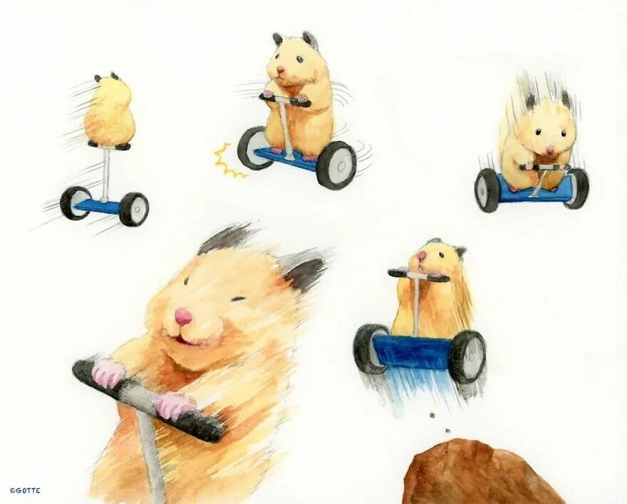 戈特的小仓鼠系列插画,已经画了很久,并收获了很多人的喜欢和追捧,因为看到小仓鼠的生活状态,会激励人们去热爱生活。这位艺术家的画笔也一直没有放下,他会将人们在生活中的经历,借由小仓鼠,再次呈现给大家看,鼓励大家去乐观勇敢地面对生活中的挫折。
