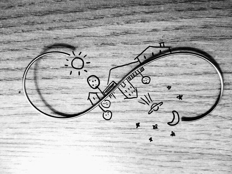 在最近,又有一位名叫娜塔莉·伯杜利的艺术家,完成了一项创意挑战,娜塔莉·伯杜利创意挑战的题目是一根双头扭曲的铁丝,这种普通的铁丝在我们生活中随处可见,铁丝的形状也非常普通,看到这根铁丝我们第一眼会想到什么图案呢?