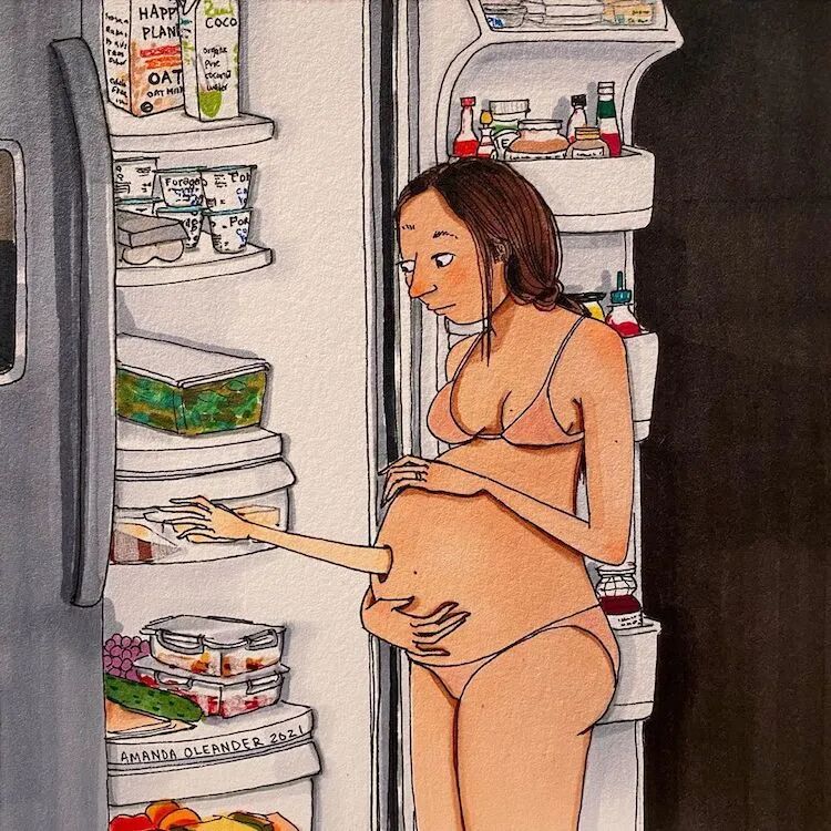为了保证真实性,洛杉矶的一位美女艺术家阿曼达·奥兰德,就用插画的形式,记录了自己怀孕的整个过程,从最初知道怀孕消息时两个人的不知所措,到感受着孩子的动作后难以置信的幸福,有辛苦,但更多的是对新生命的期待,她的这一系列插画发布后,引发了几十万网友的关注,并引发大家的共鸣和讨论,大家纷纷回忆起了自己的孕育过程。