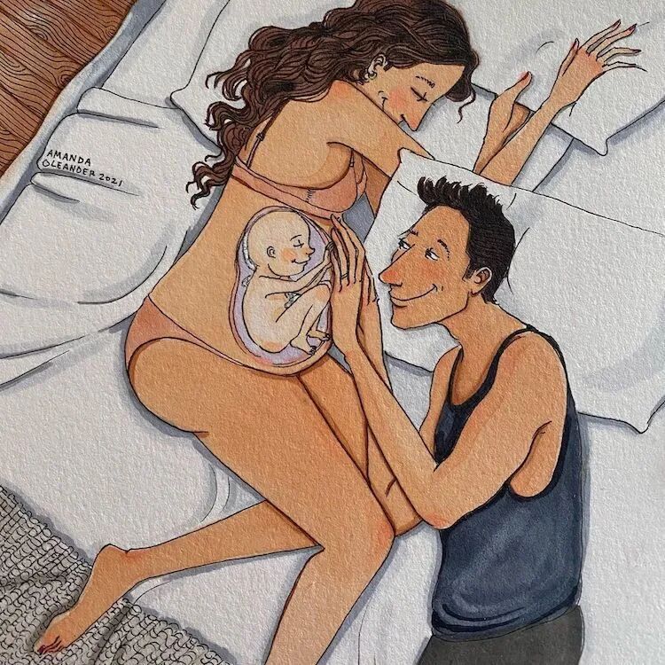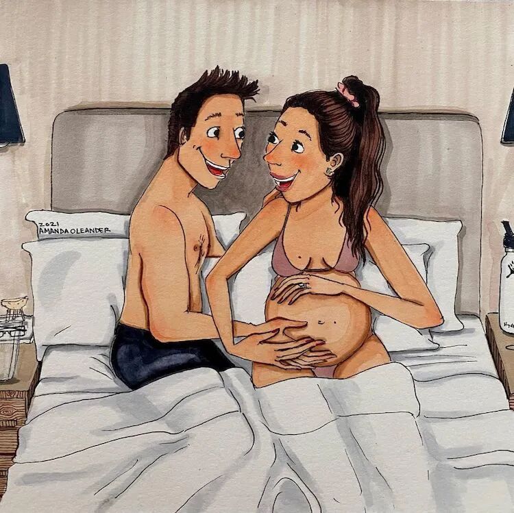 这些带着满满温柔的插画让人看到了爱情的美好,阿曼达·奥兰德没想到自己的作品,会受到这么多人的喜欢,这给了她极大的鼓励,她说等到孩子出生后,她也会一直画下去。接下来,大家就跟小绛一起,欣赏一下这位艺术家的精彩作品吧,如果你也孕育过并且正在孕育一个小生命,一定能从她的作品中,产生强烈的共鸣。
