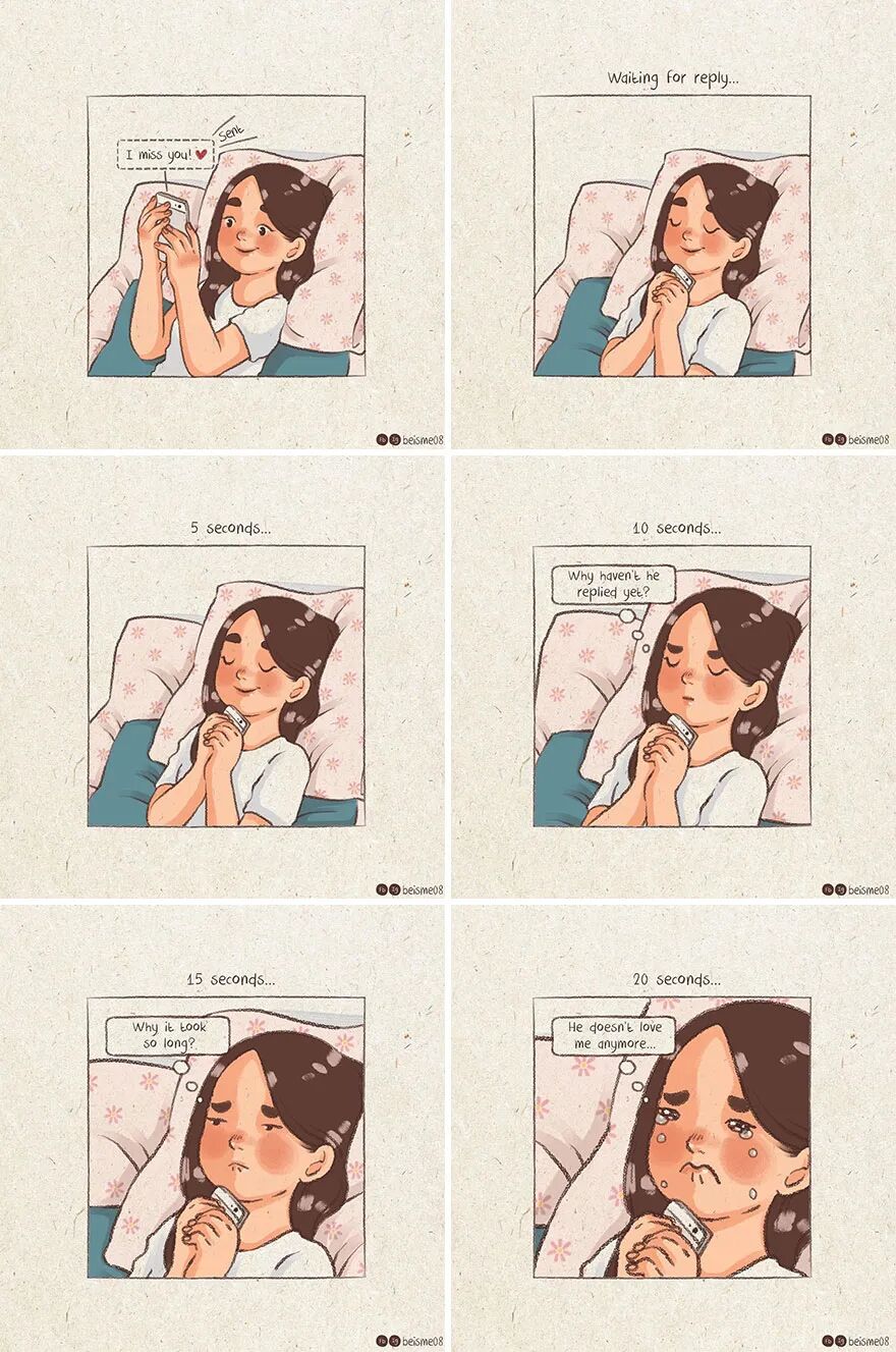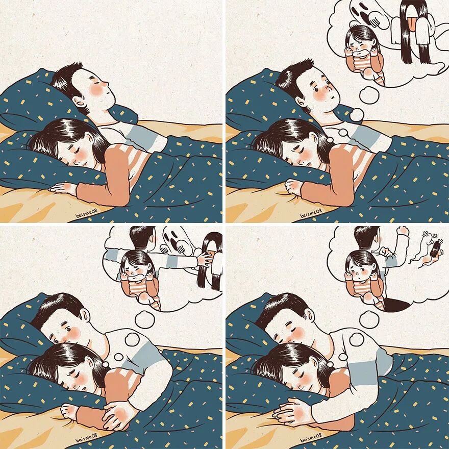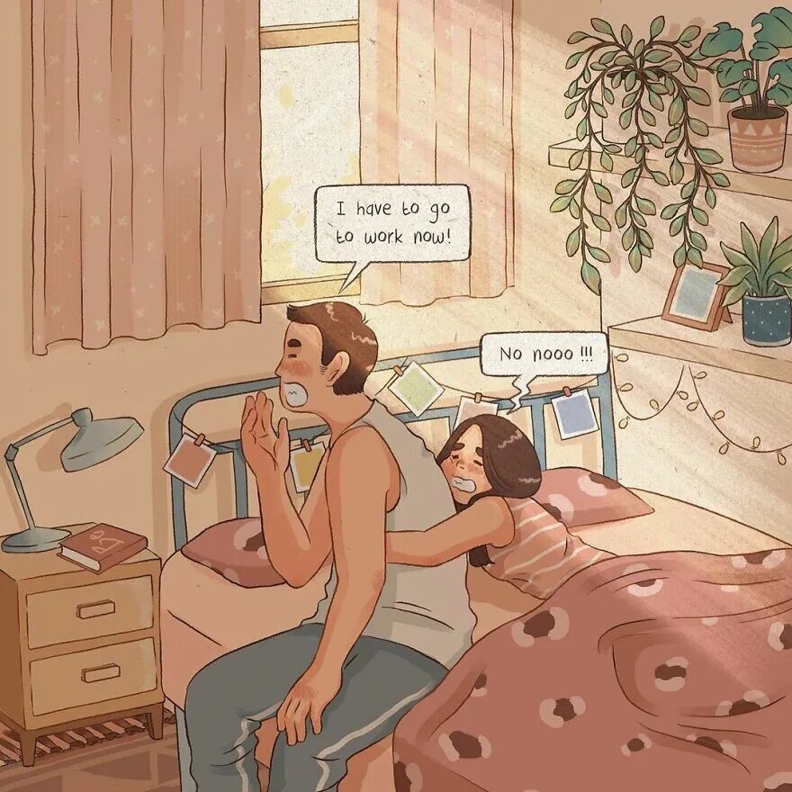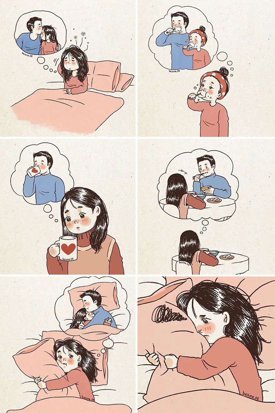 来自越南的艺术家Luong Thuy,就跟大家分享了她对爱的理解与感受,她用一系列充满爱意的插画,描述了与男友的日常与瞬间,通过这些浪漫又亲密的漫画,艺术家希望为两个人创造美好的回忆,也希望大家看到后,都能勇敢地去爱,去追求爱。
