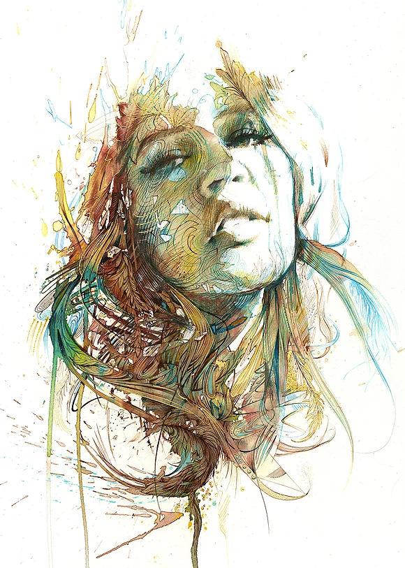 今天, 小绛再来为大家介绍一位用特殊颜料绘画的艺术家,他的名字叫做卡恩·格里菲思是一位来自英国的插画家,卡恩·格里菲思使用的绘画颜料让人意料不到,他的绘画材料主要是白兰地、伏特加、威士忌这一类的酒水。
