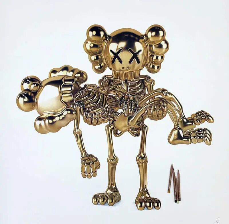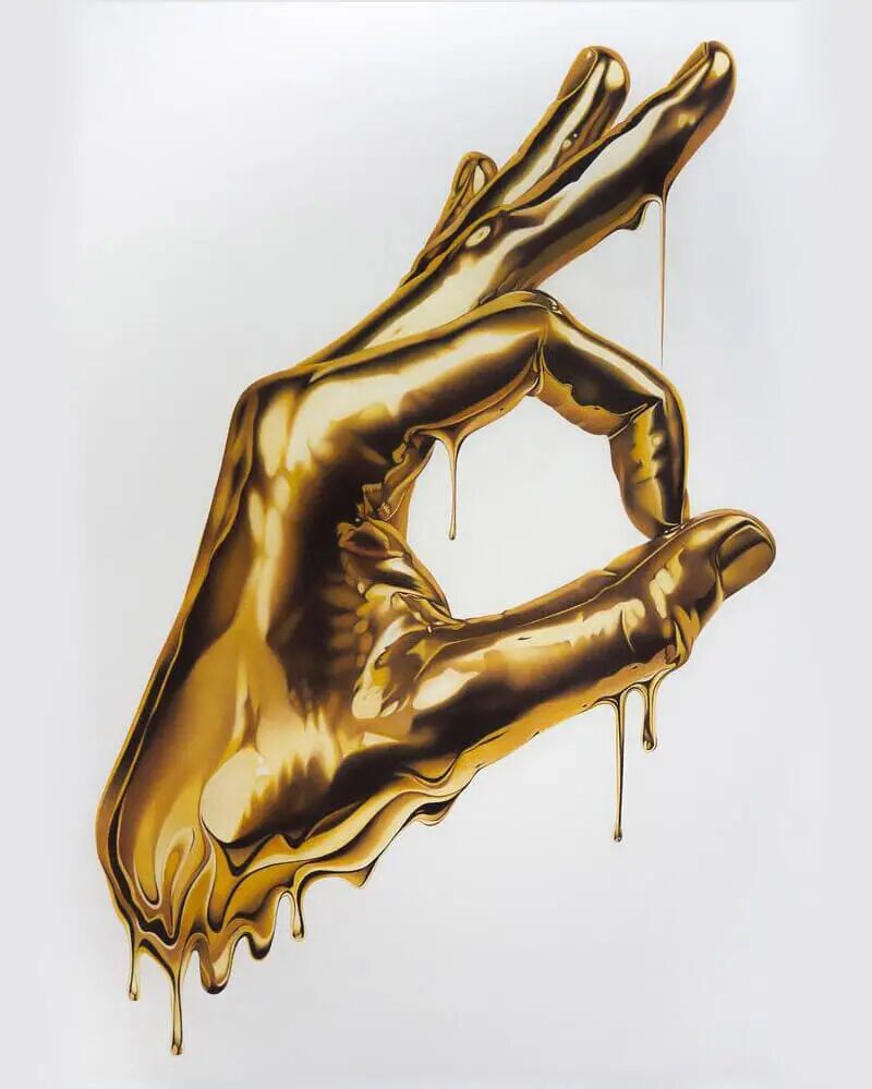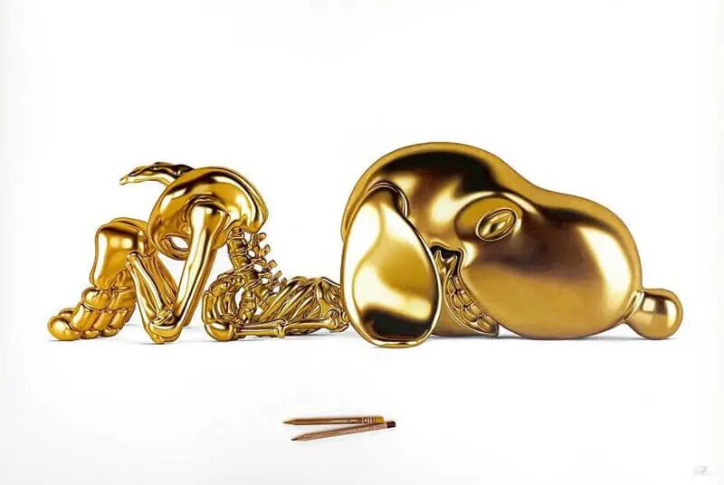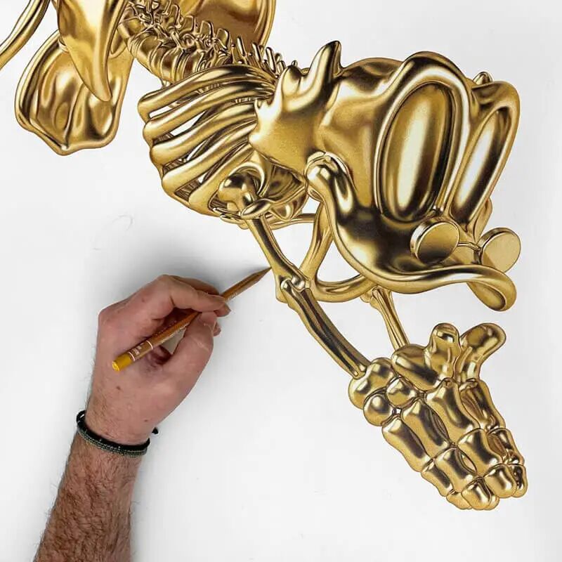 亚历山德罗·帕格里亚的素描作品中,黄金色是该系列的主要颜色,流动的金色能一下子就抓住人们的眼球,它看起来再也不像一幅铅笔画了,感觉就像是一个黄金雕塑,闪着金光,看起来极其奢华。