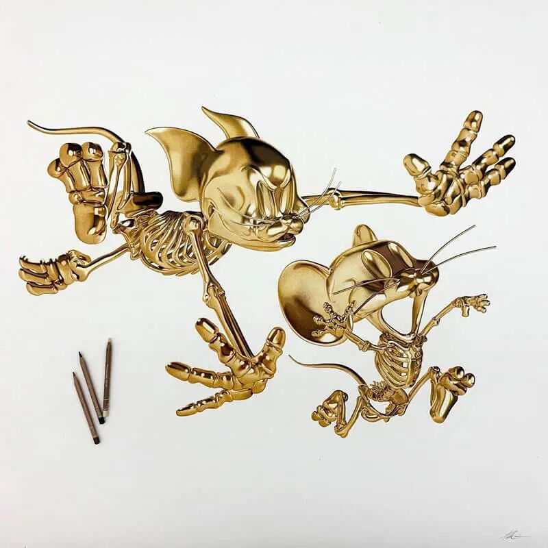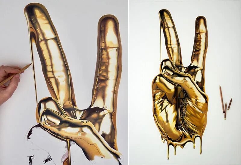 这位意大利艺术家在每一幅作品上,都花费了很多的时间和耐心,毫无疑问,质感和精细度都很棒,很多看过他的这一系列作品的人都表示,这是他们见过的最有创意的铅笔素描,用铅笔在纸上画画,妥妥的素描没毛病,只是颜色由黑白变成了金黄色而已,精彩和逼真程度令人惊叹。