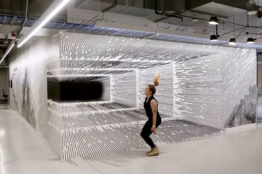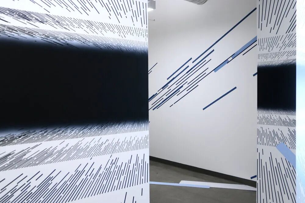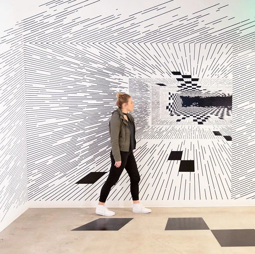 来自加利福尼亚州洛杉矶的视觉艺术家凯蒂·安·吉尔莫尔,就用一条条笔直的线条,组成富有视觉冲击感的作品。