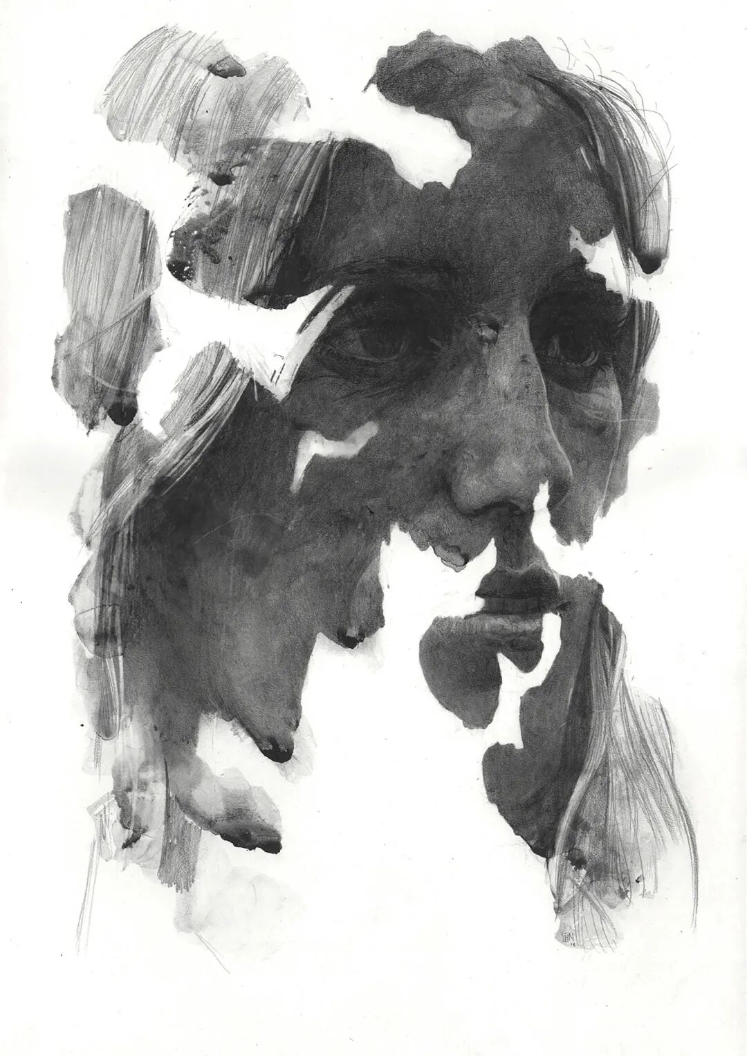 毫无疑问,托马斯是一位十分有天赋的画家,我们可以从他自然潇洒的笔触中,感受到他扎实的造型功底。他擅长用木炭来画人物肖像,作品最特别之处就在于,那些看似不合理,但却让人十分着迷的多处留白。
