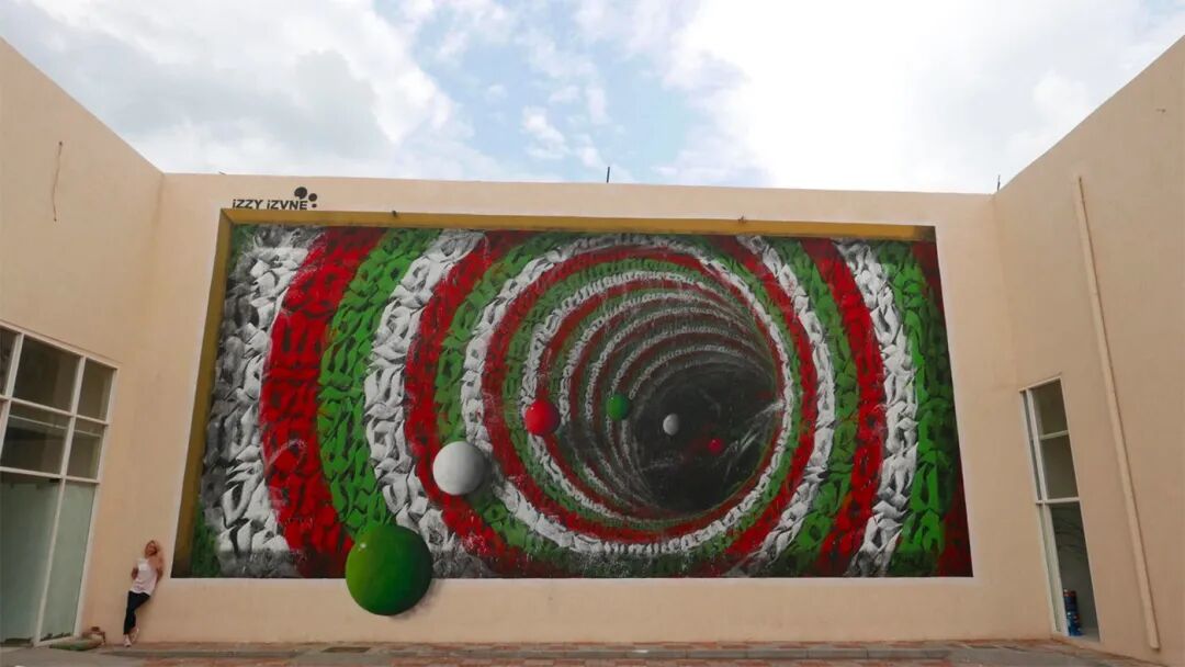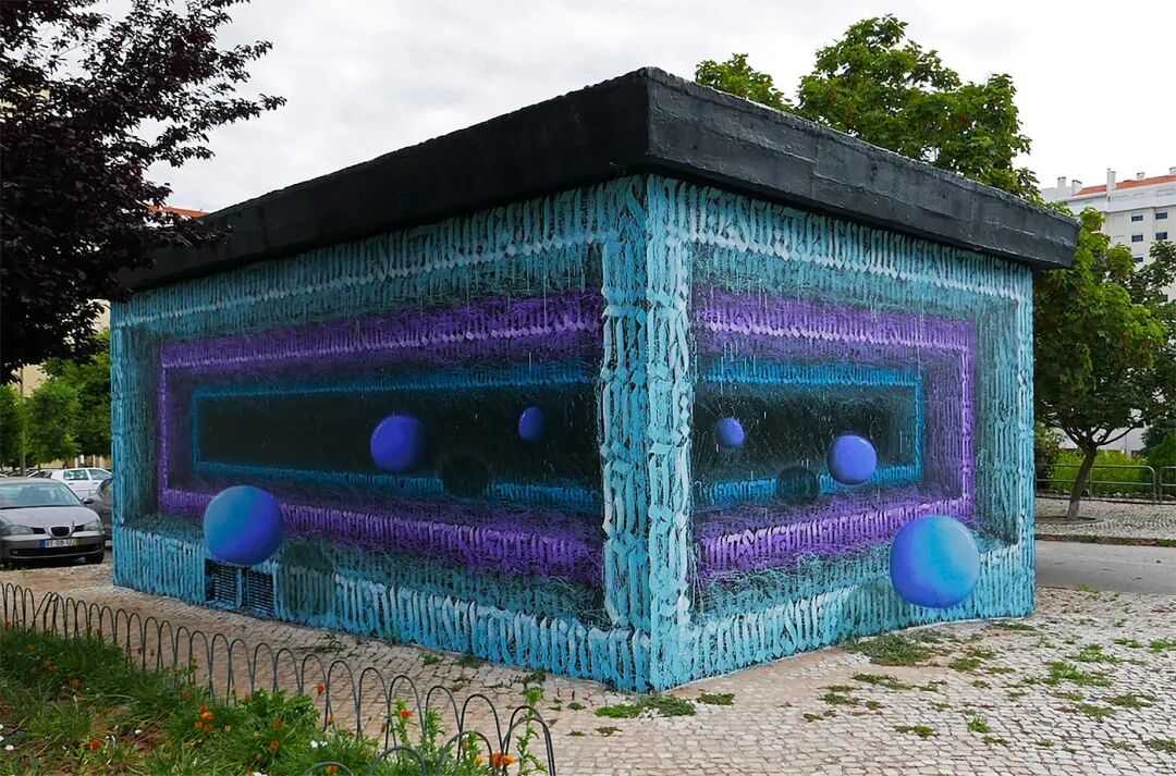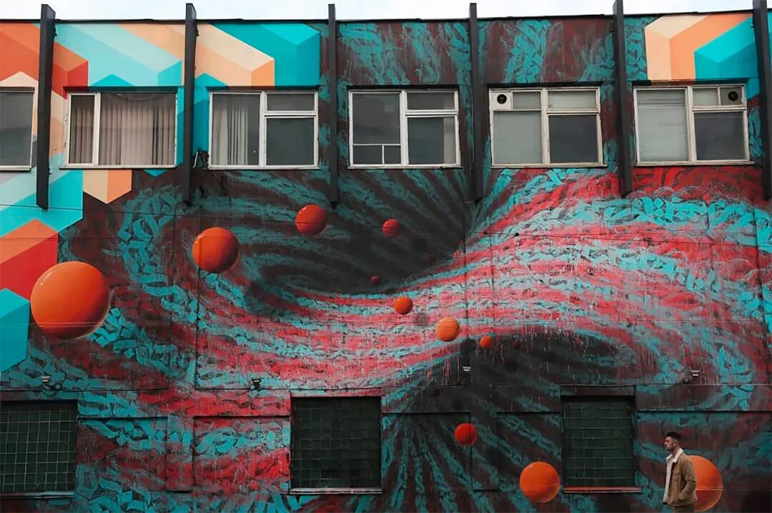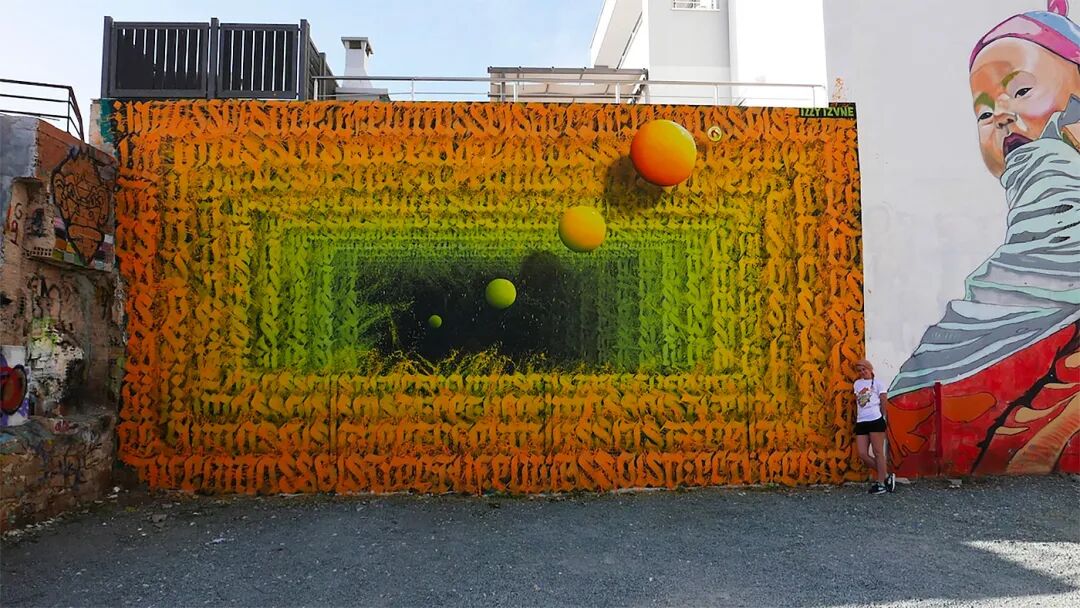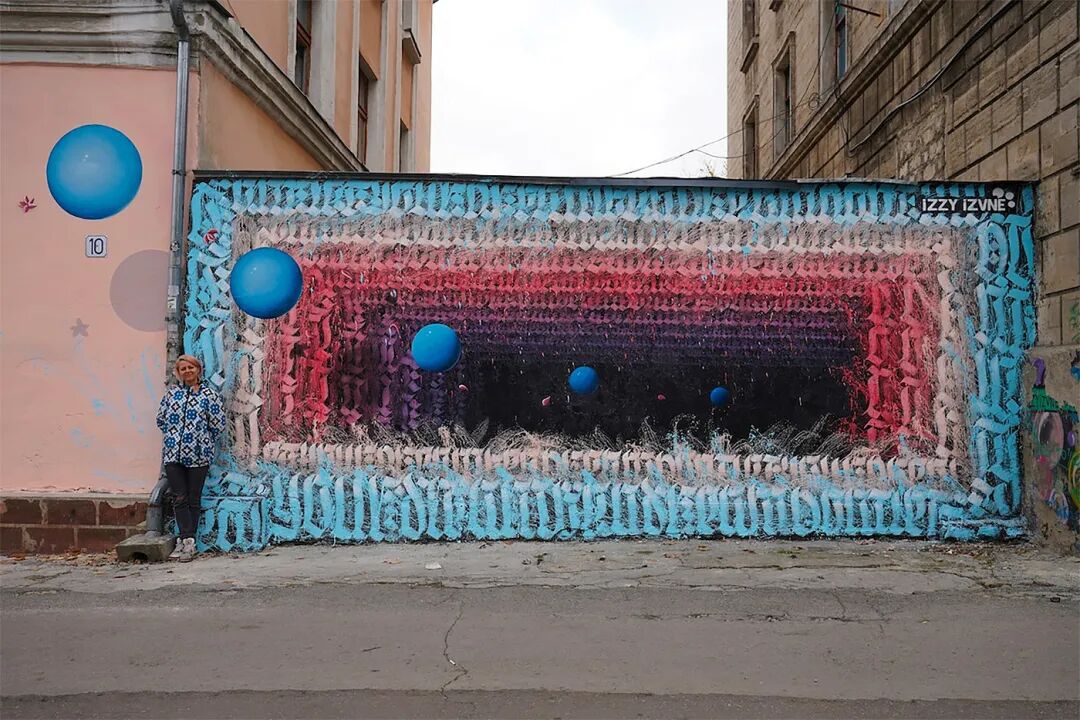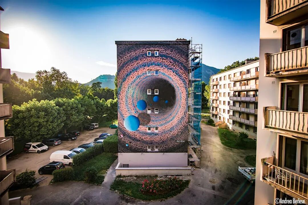 伊兹的作品很有自己的个人风格,由于从小对浩瀚宇宙的向往和热爱,她在自己的壁画创作中也融入了宇宙的元素,从而形成了真正属于她的独特风格,最令人佩服的地方在于,伊兹打破传统街头壁画的创作模式,将绘画与错觉相结合,创作出了独特的大型3D壁画,墙壁仿佛将我们带入了另一个宇宙中,让人感到身临其境,眼花缭乱。