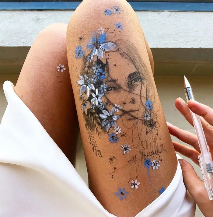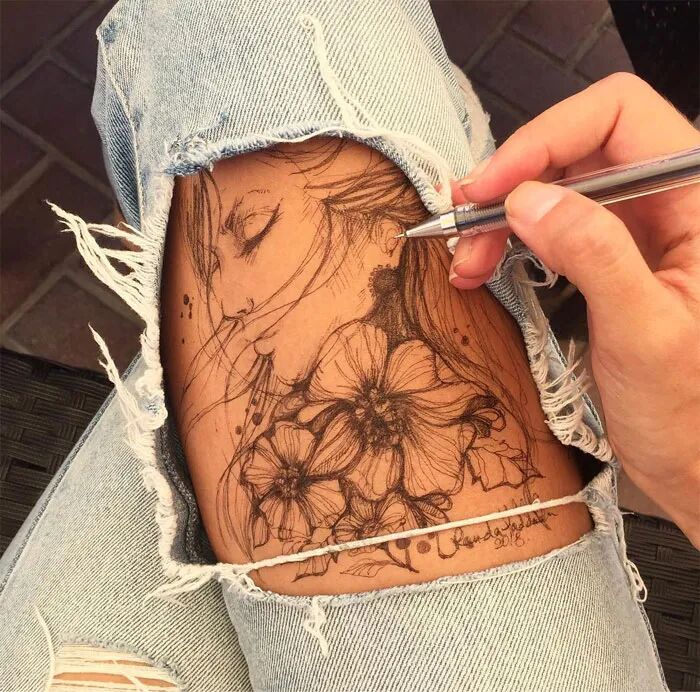 今天小绛要跟大家分享的这位艺术家,也是相当厉害了,她以自己的大腿当作画布,来创作令人惊叹的水墨画,这位艺术家就是兰达·哈达丁,她在艺术创作中,一向不走寻常路,但她最为人所熟知的作品,就是画在自己大腿上的画了。