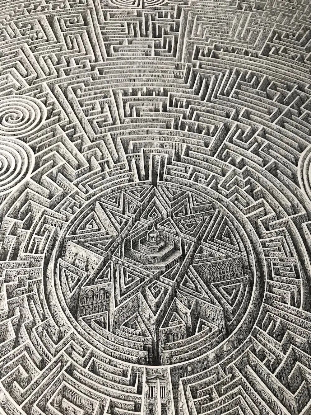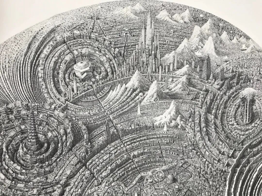 用一年多的时间,去创作一幅素描作品,这幅作品会多么复杂,多么精彩呢?杰明·萨克用他的作品给出了答案,在杰明·萨克的素描作品中,我们可以看到类似未来城市一样的场景,整幅画作拥有极其复杂的建筑物,这些建筑物组成了复杂的迷宫。