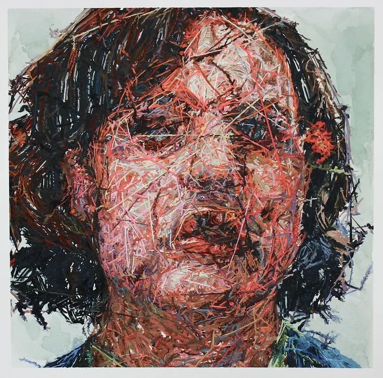 并且,还有很多的艺术家,在超写实的基础了,与其他的艺术形式相结合,创作全新的超写实作品。比如艺术家凯西·扎瓦利亚,就用刺绣的方式,创作超写实人物肖像,一针一针,一色一色,这位美女艺术家将每一个人物的神态、五官、毛发捕捉出来,形成的作品超级写实,让人看了服气极了。