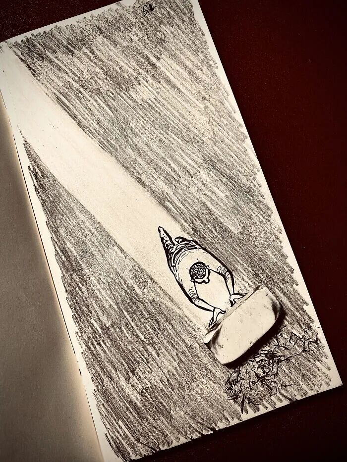 对于艺术创作来说,其实也经常会遇到瓶颈,尤其是创意枯竭匮乏的时候,山姆·雷就会拿出自己的速写本,在上面随意画画,一方面是为了解压,一方面也是为了寻找创作灵感。在这个过程中,他的情绪就从郁闷变成了纾解,短短时间里,他就画满了整本速写本。