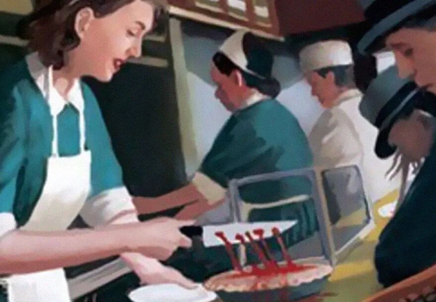 女服务员切蛋糕也充满了故事情节。