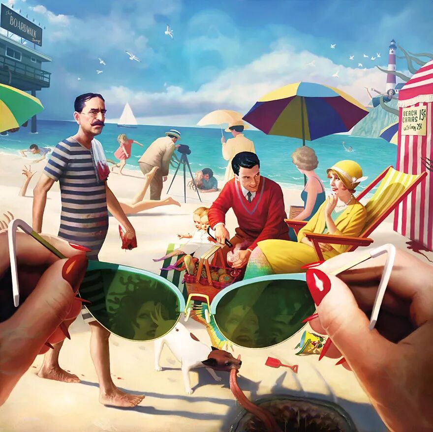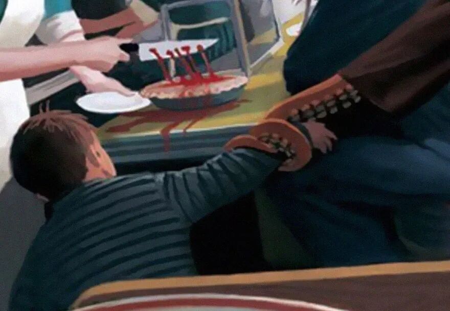 因此“剧本杀”游戏深受年轻人的喜欢,今天,让我们来玩一把线上的“剧本杀”吧,这个游戏需要你在看起来非常正常的图片中,找到不合理的场景。而创作这组“剧本杀”式画作的插画家杰夫·约翰逊,来自明尼苏达州的一个乡村。