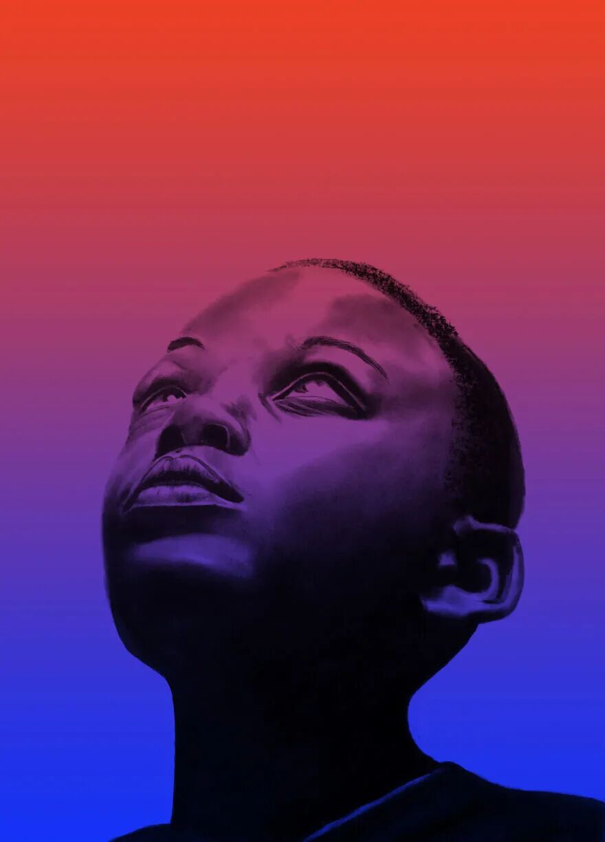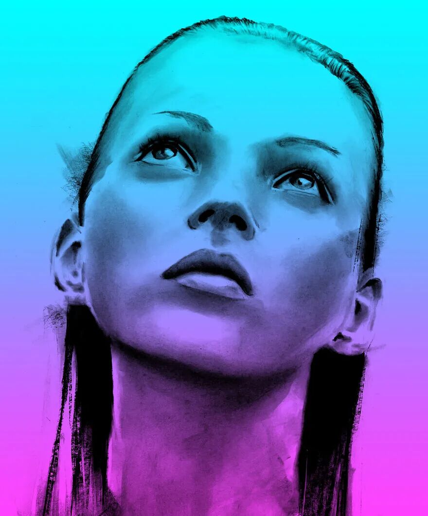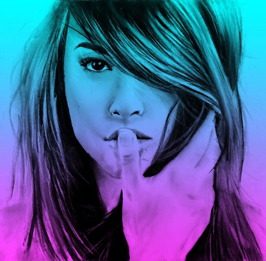 于是她开始了木炭艺术与数字艺术相结合的方案,经过数字技术处理之后,加上一些色彩的叠加,本来黑白色的肖像画,变成了彩色肖像画,带给人完全不同的外观和感觉,创意十足,令人赞叹。