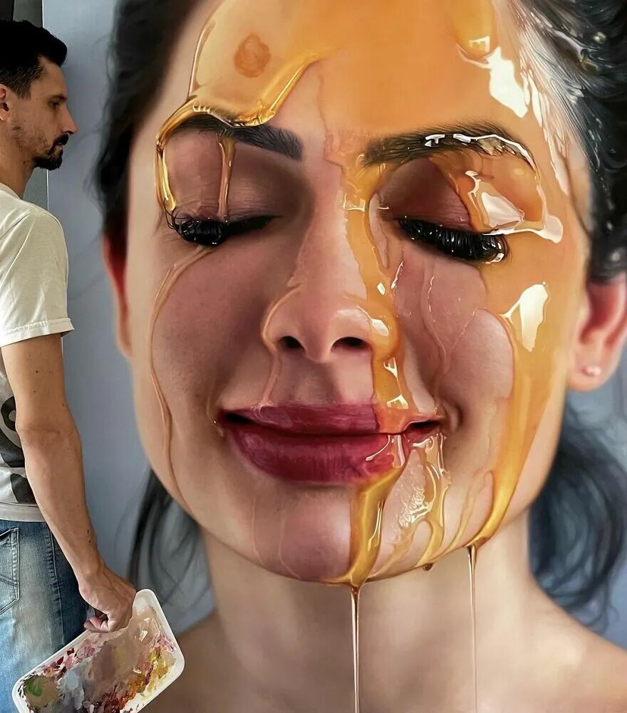 在他的作品中,我们经常能看到,在人物的脸上, 有一滩往下流淌的蜂蜜,而人物张开嘴巴,似乎正在准备迎接即将到来的甜蜜。除了蜂蜜系列作品外,法比亚诺·米拉尼还经常描绘一些我们熟悉的人物,以及一些水下质感的人物等等。