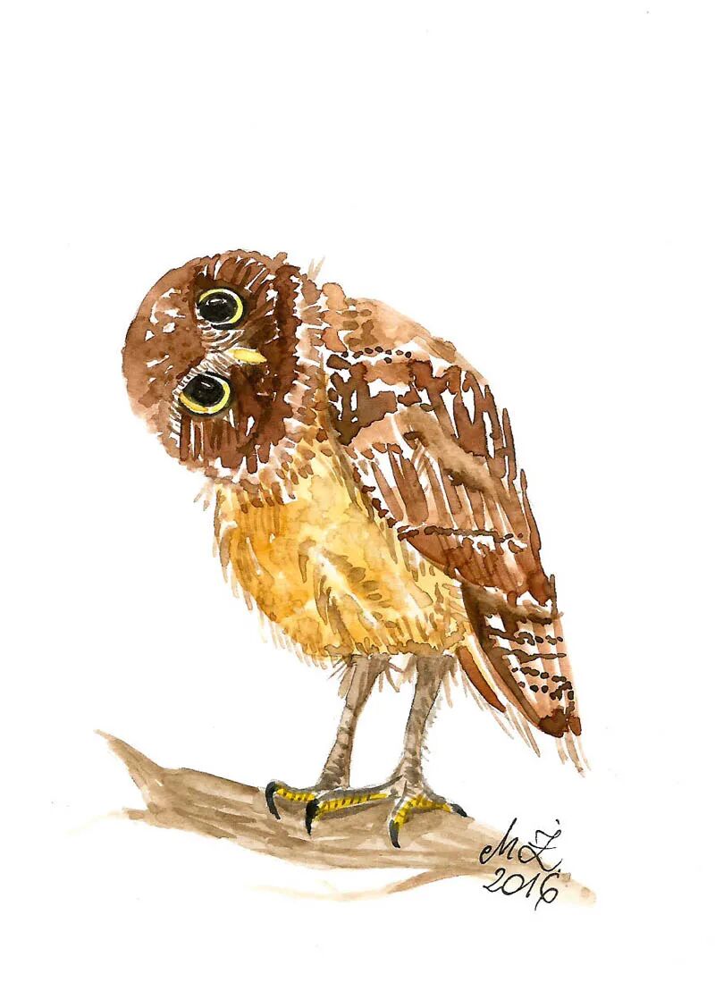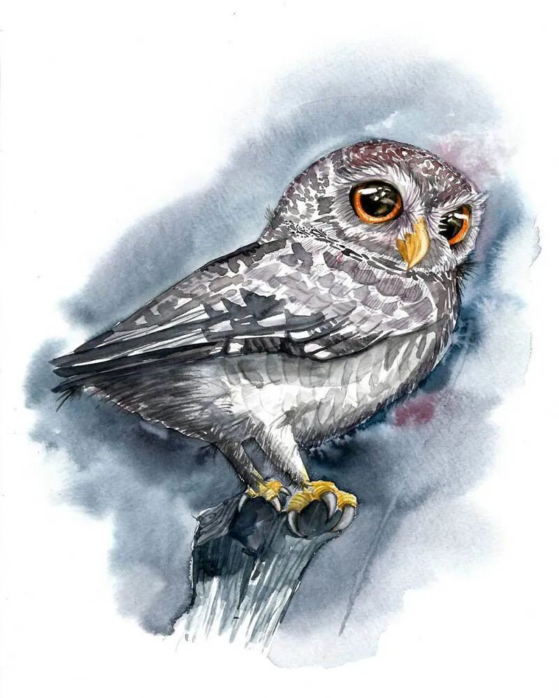 艺术家自己也觉得匪夷所思,为何自己会对猫头鹰有如此大的兴趣,但很多事情搞不明白也就随它去了。在前几年,玛格达莱娜开始了她的猫头鹰水彩画之旅,将自己的这两份热爱相结合。