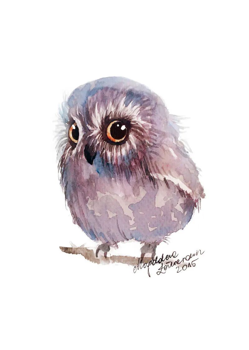几年的时间里,玛格达莱娜画了成百上千幅猫头鹰的水彩画,每一只都有自己独特的风格,造型和配色都不一样,不知道这位艺术家是对猫头鹰的品种进行了深入的研究,还是完全凭借自己的想象,总之她画出了各种各样的毛茸茸的,可爱呆萌的猫头鹰的样子,大大的眼睛,尖尖的嘴巴,让人看了心都要萌化了。