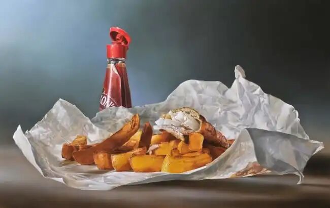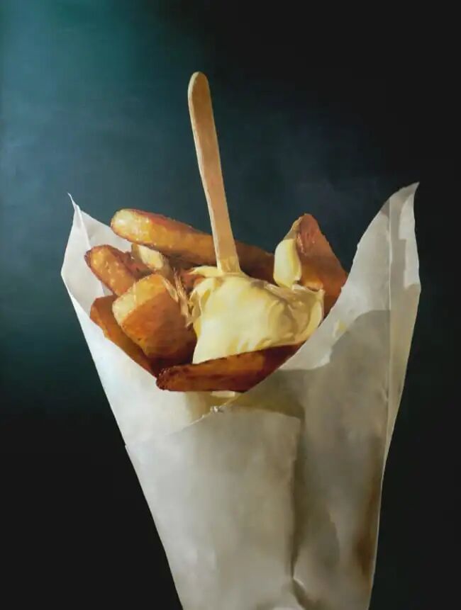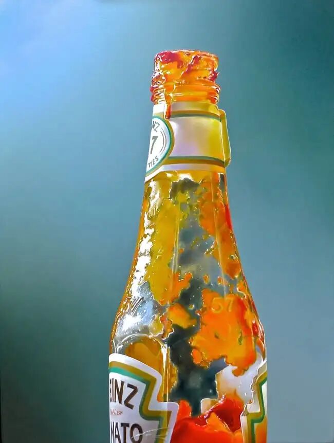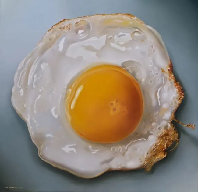 今天,小绛就跟大家分享贾尔夫·斯帕奈的一些食物主题的超写实作品,其中包括番茄酱瓶,炸薯条,蔬菜沙拉等等,尤其是他笔下的煎蛋,质感太真实了,仿佛刚出锅,热腾腾地散发着香味,让人看了忍不住流口水。