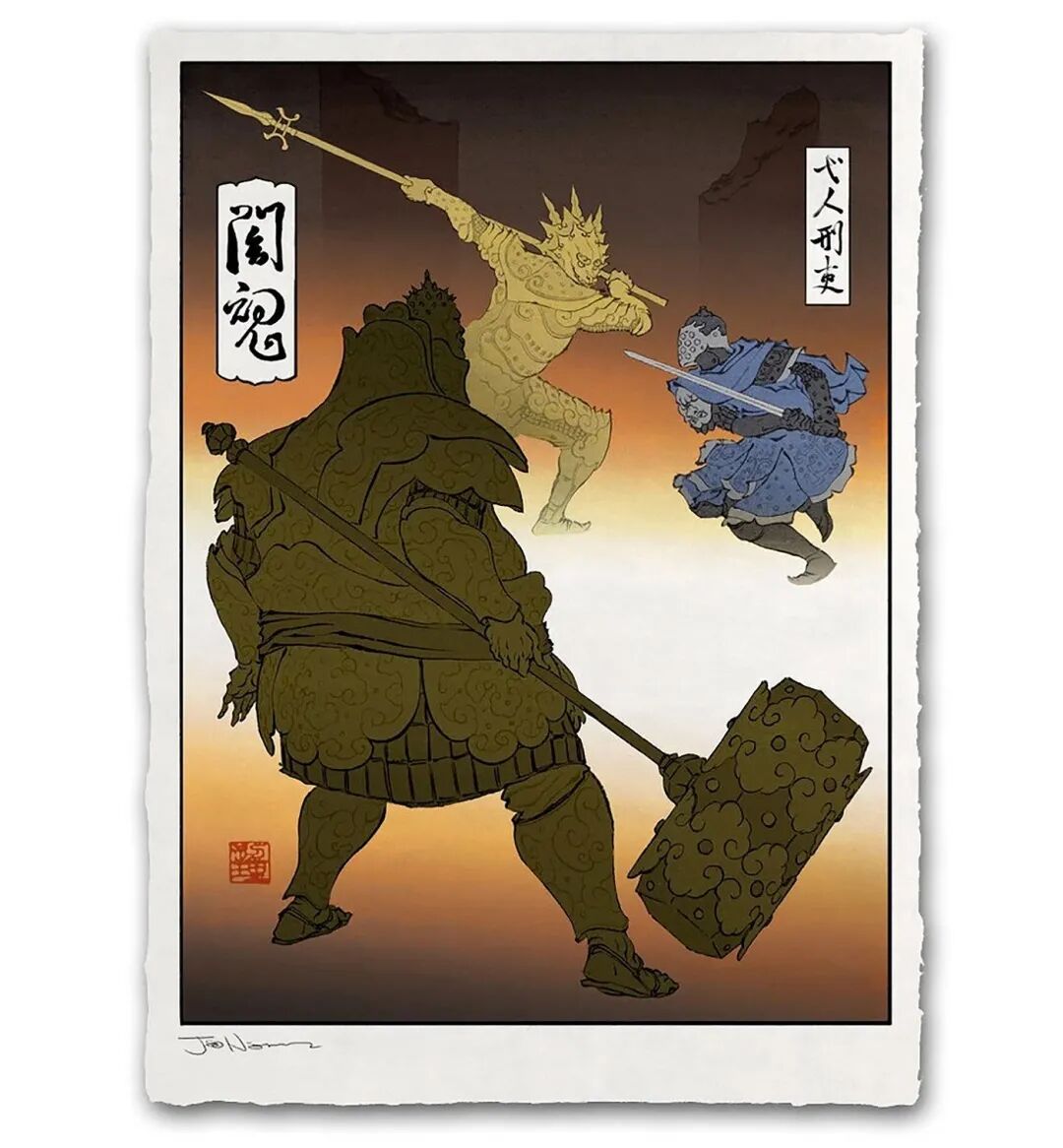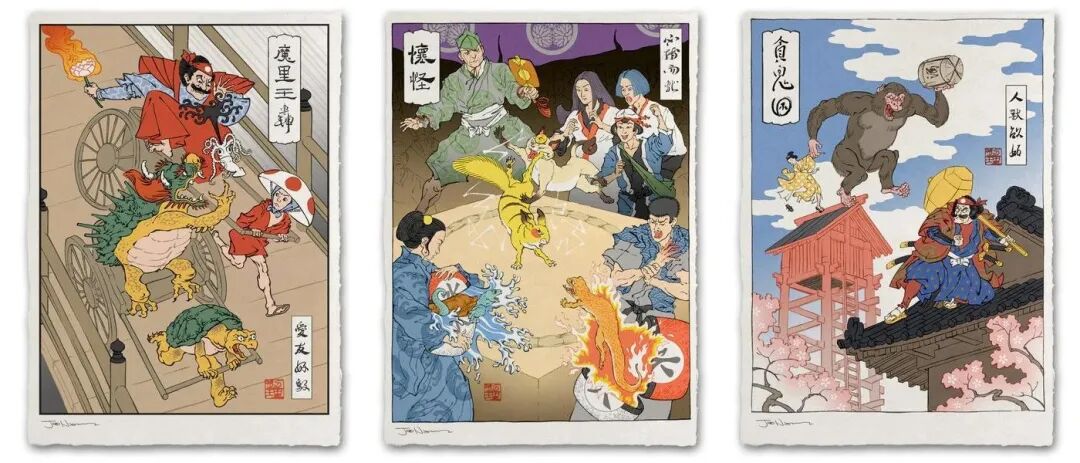 到了现当代,浮世绘虽然逐渐没落,不过,凭借它独特的表达方式,依旧有很多人喜欢,从事浮世绘创作的艺术家也大有人在。今天,小绛就来为大家介绍一位特别的浮世绘画家,他的名字叫做杰德·亨利,浮世绘是他最喜欢的绘画风格之一,除了绘画之外,他还是一位资深的动漫迷,于是杰德·亨利就将两者结合到了一起,于是诞生出非常好玩的作品。