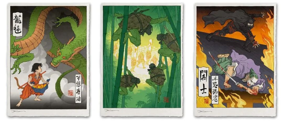 在杰德·亨利的作品中,你可以清楚地看到《七龙珠》、《忍者神龟》、《千与千寻》等等经典动画片中的角色形象,不过,也有一些浮世绘作品让人摸不到头脑,让我们一起来看看,由杰德·亨利创作的浮世绘作品,你能不能将它们都认出来吧。
